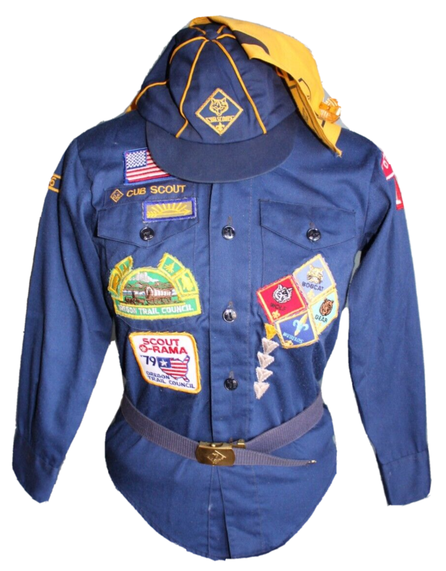 Vintage Cub Scouts Shirt, Hat, Belt, Scarf, Patches Oregon Trail Council 133 ~Neck 12~