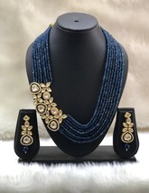 VeroniQ Trends-Multistrand Party Wear Kundan Long Necklace With Blue Beads