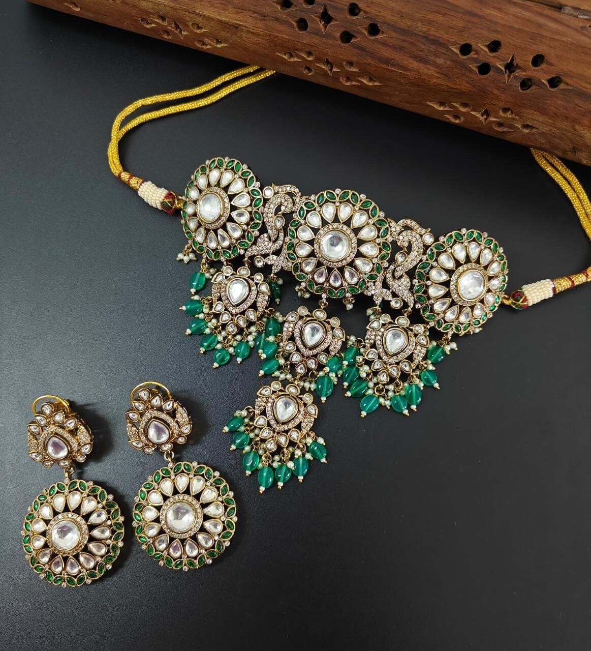 VeroniQ Trends-Bollywood Style Victorian Polki Kundan Necklace With Pearls-India
