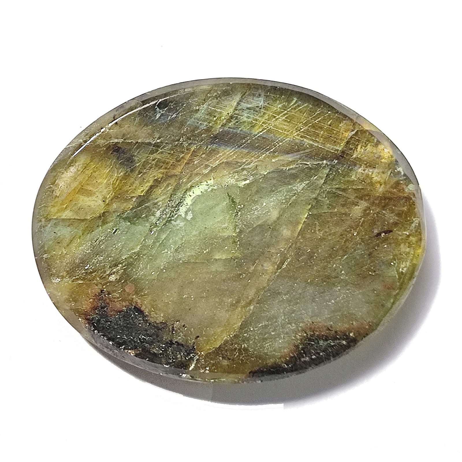 Product description: This 54.52 Carats TCW 100% Natural Beautiful Labradorite Oval Cabochon Good Quality Gem By DVG of Size 34.0 x 26.0 x 7.4 MM Approx., 1 Pc Gem has Opaque Clarity, Beautiful Green-Yellow mixed Color, no treatment come from Mexico mines. At DVG, we deal only in 100% Natural gems from around the world and manufacture.All of the products are ethically sourced.