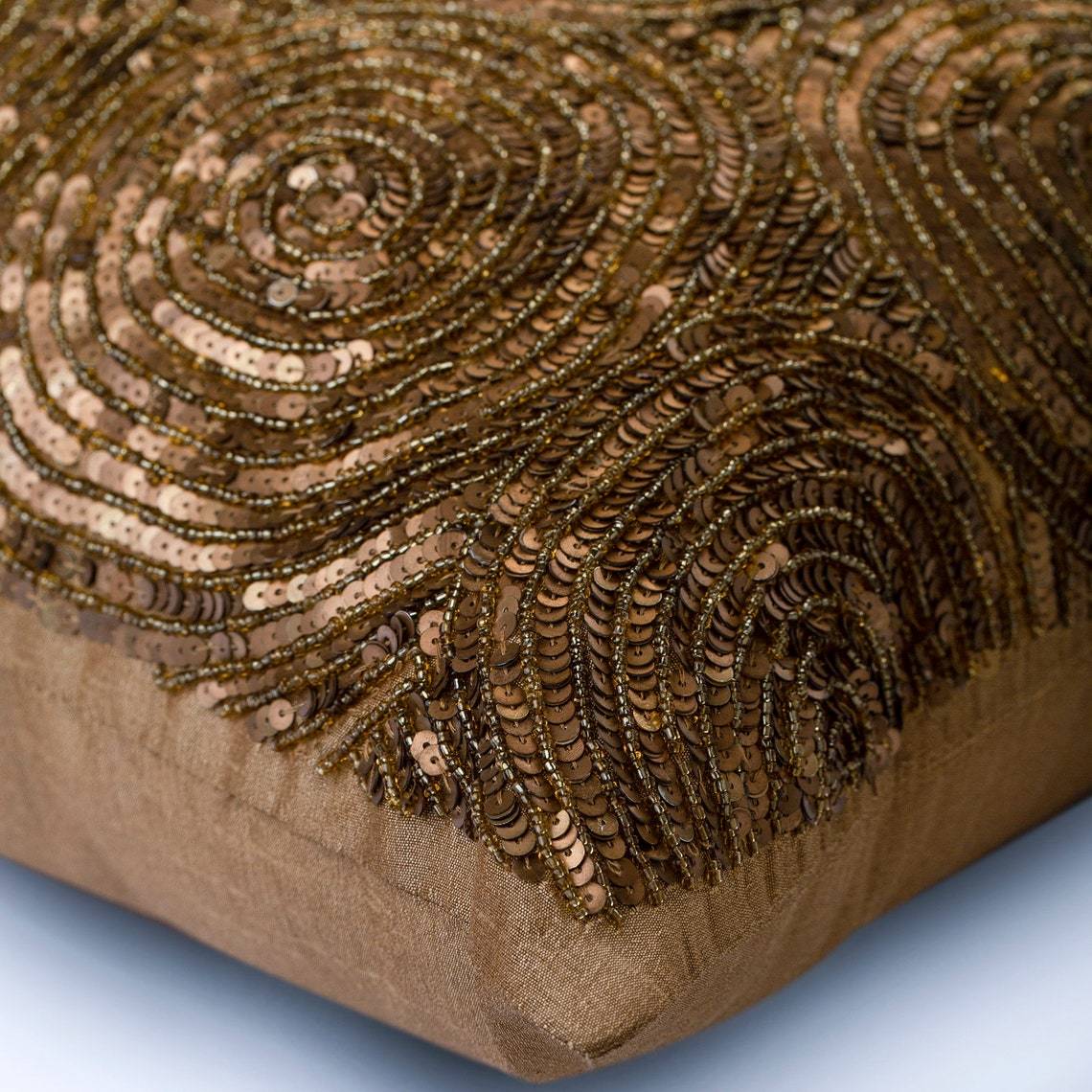 Golden Touch is an exclusive 100% handmade decorative pillow cover designed and created with intrinsic detailing. A perfect item to decorate your living room, bedroom, office, couch, chair, sofa or bed.