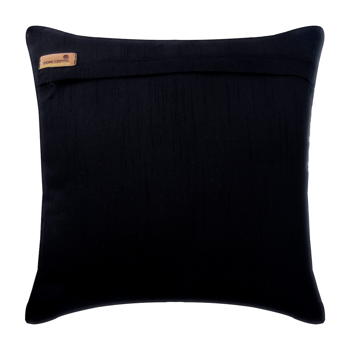 Color Block & Pintucks Black Art Silk 16"x16" Pillow Case, Dark Secret