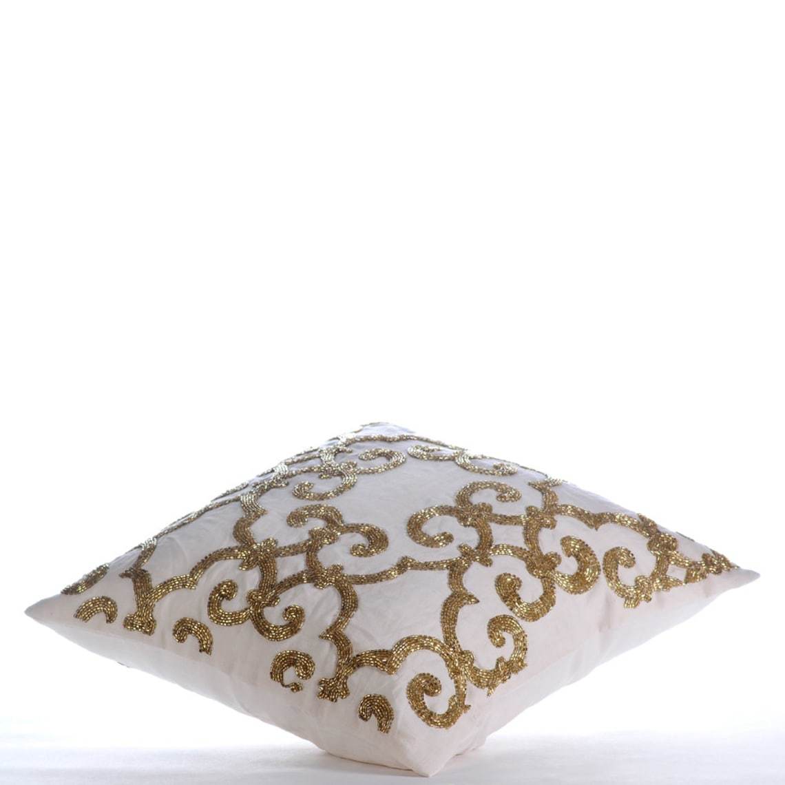 Gold Encrusted is an exclusive 100% handmade decorative pillow cover designed and created with intrinsic detailing. A perfect item to decorate your living room, bedroom, office, couch, chair, sofa or bed.