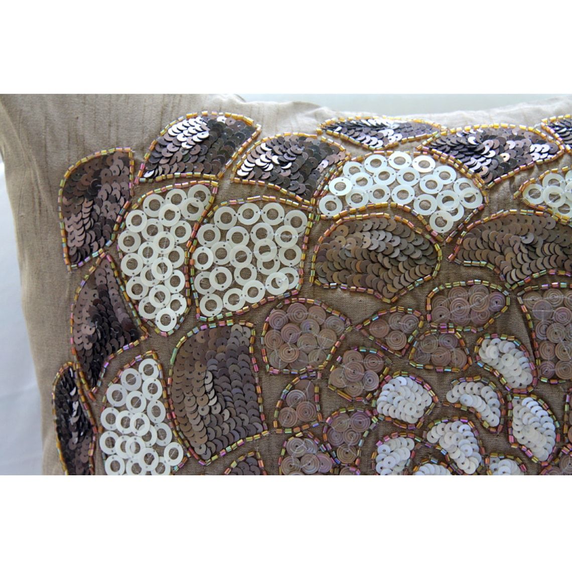 Brown Sequins And Beaded Flower 16"x16" Silk Pillows Cover, Brown Wildflower