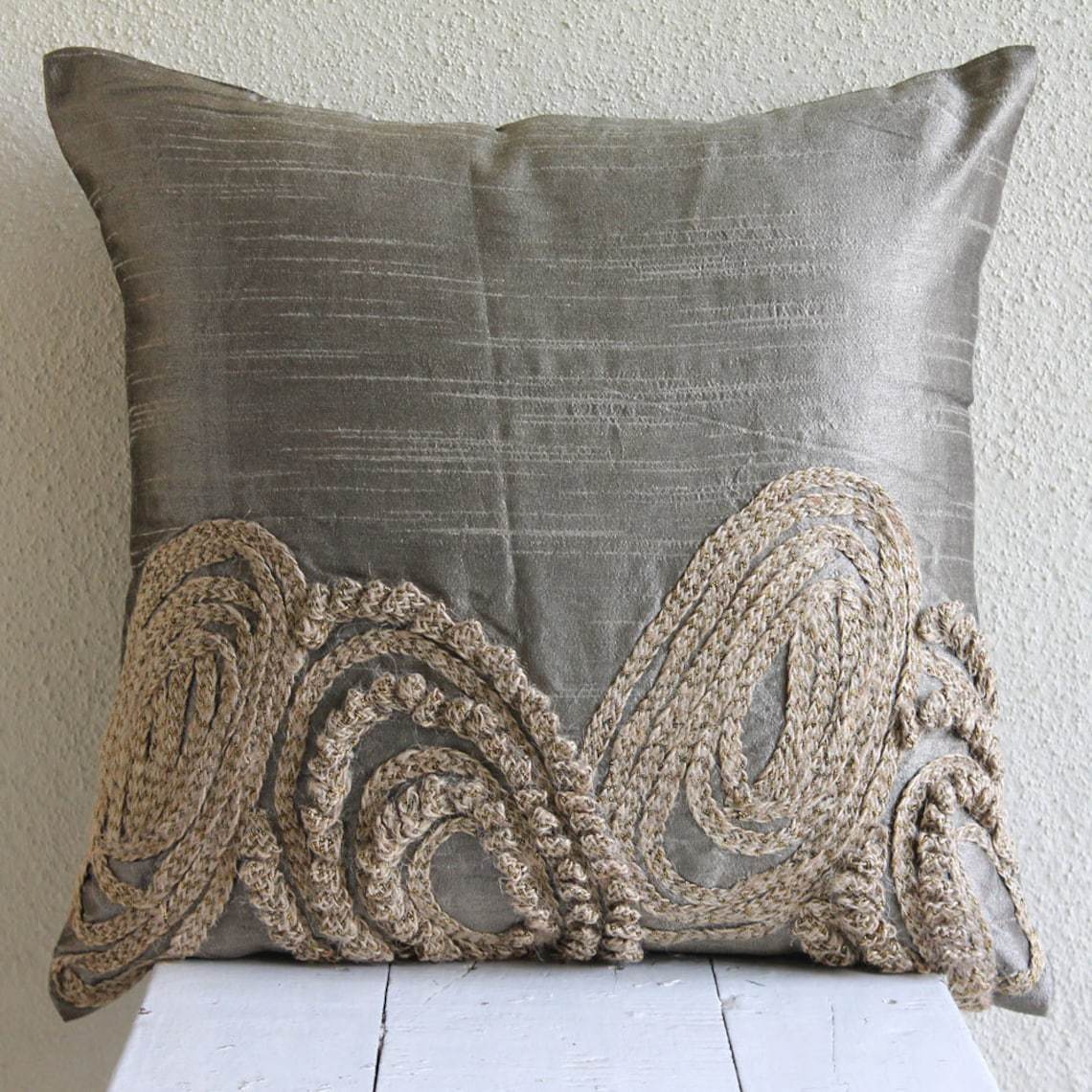 Silver Jute is an exclusive 100% handmade decorative pillow cover designed and created with intrinsic detailing. A perfect item to decorate your living room, bedroom, office, couch, chair, sofa or bed.