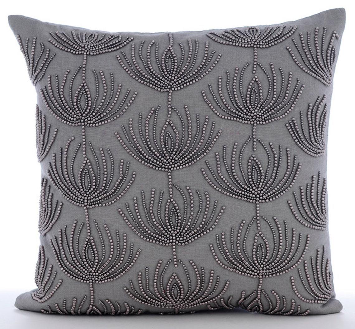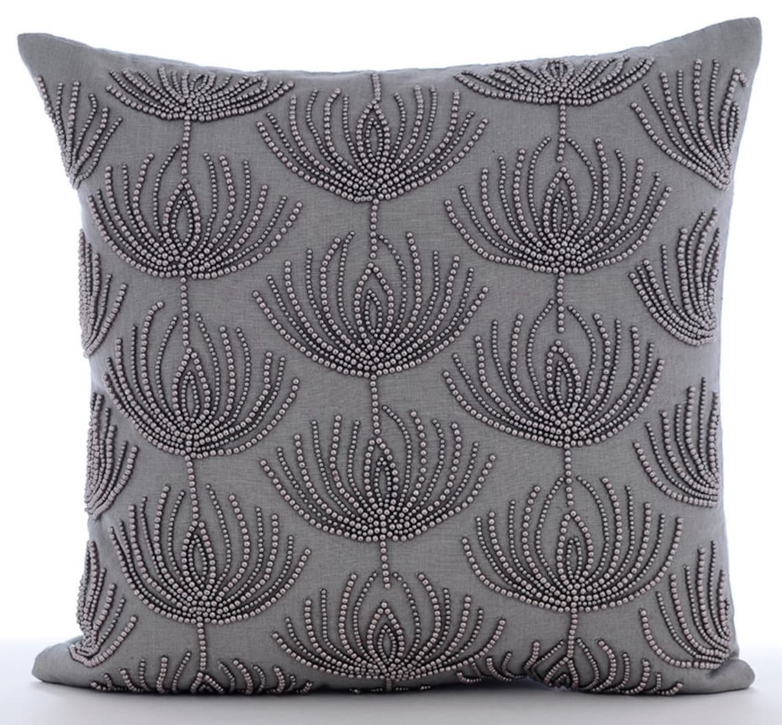 Beaded Lotus Pattern 16x16 Cotton Linen Gray and similar items