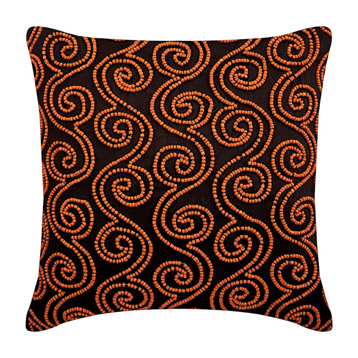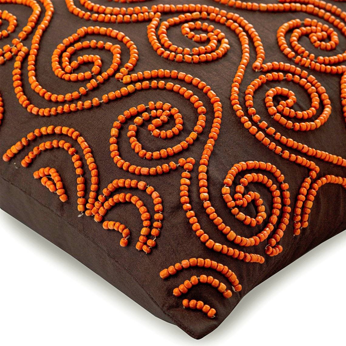 Brown Orange Beaded Scroll 16"x16" Silk and 50 similar items