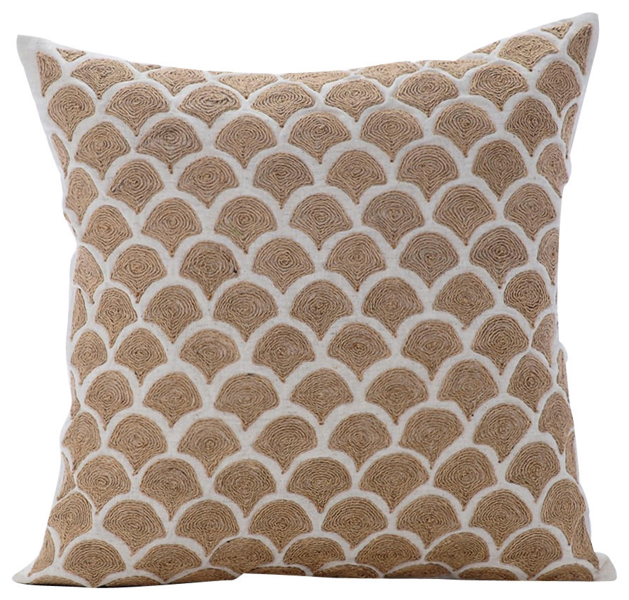 Beige Throw Pillow Covers 16"x16" Cotton, Jute Trellis
