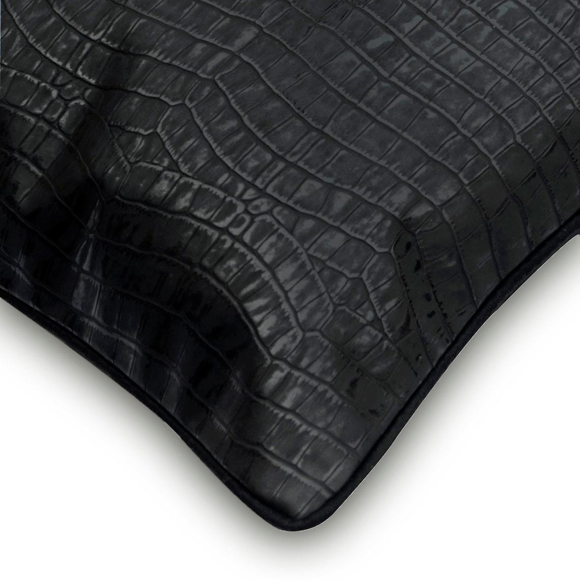 Black Throw Pillow Covers 16"x16" Faux Leather, Paved Black