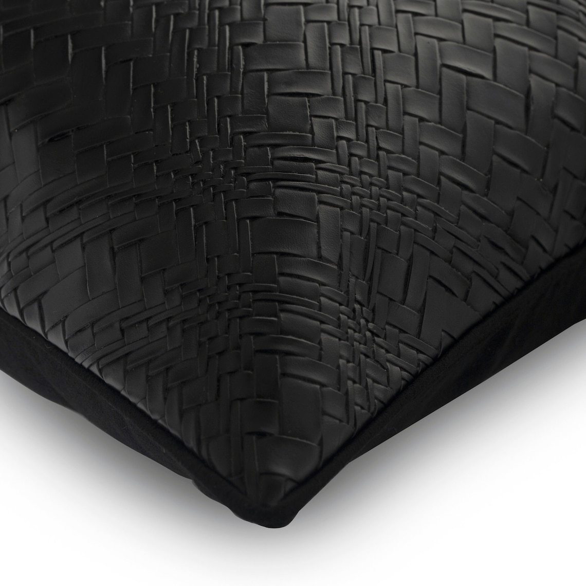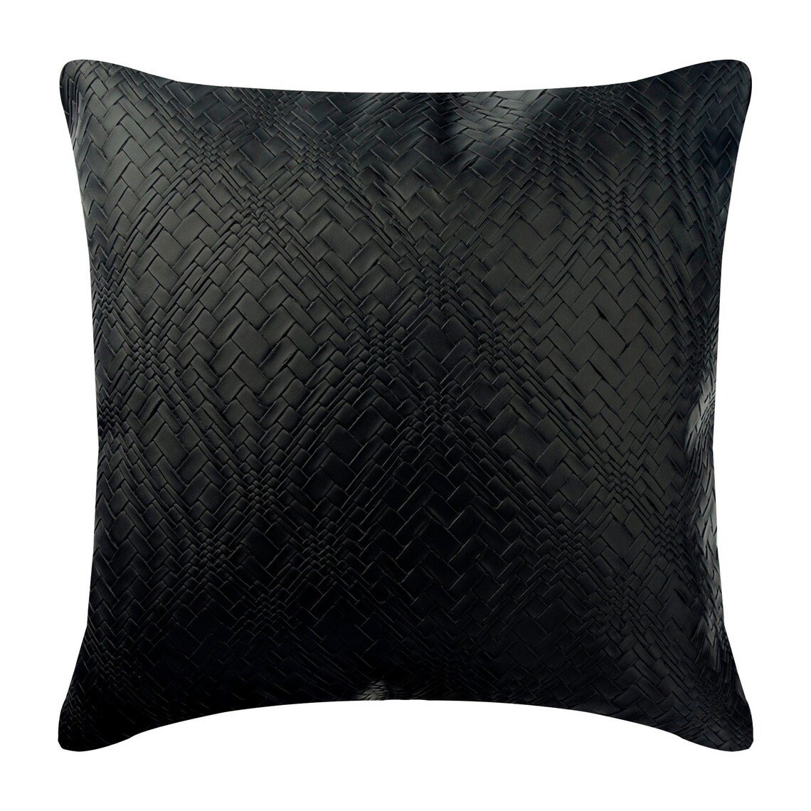 Textured Black Faux Leather & Suede 16"x16" Pillow Cover, Black Diamond
