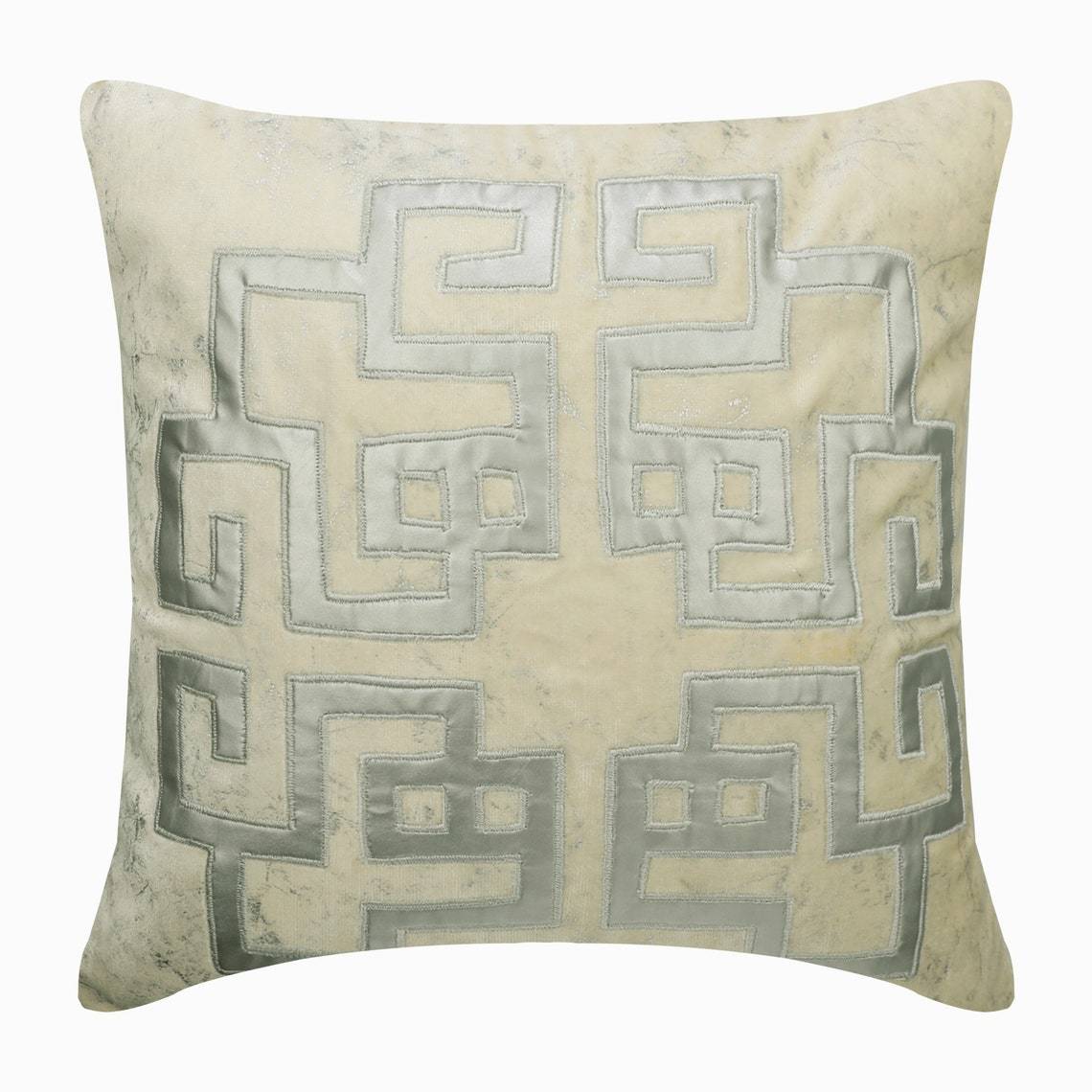 Decorative 16"x16" Greek Applique & Foil Ivory Velvet Throw Pillow - Greek Irene