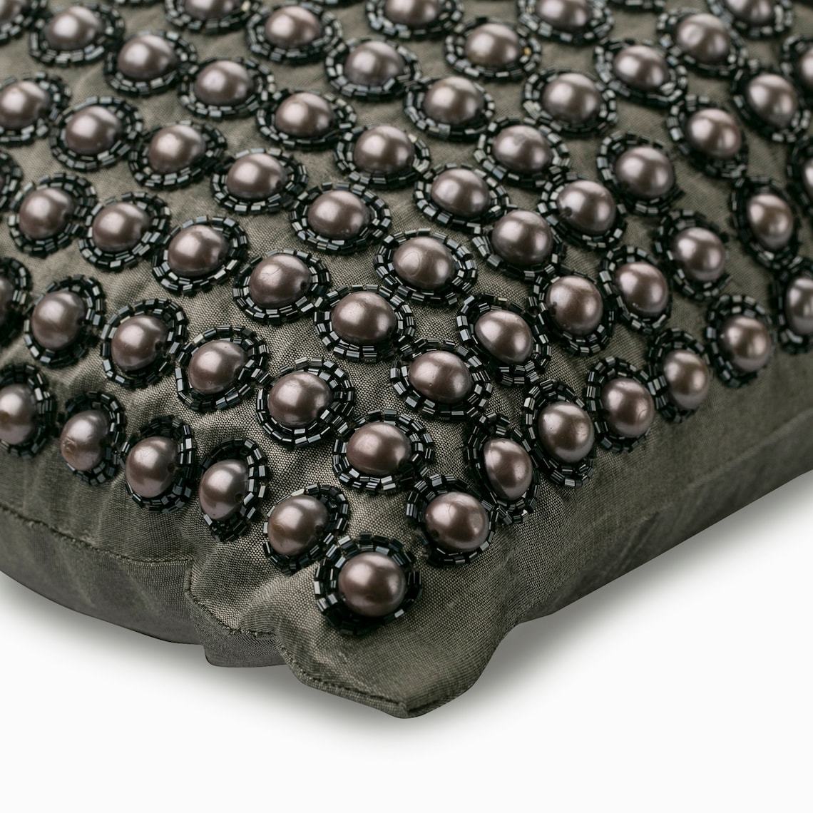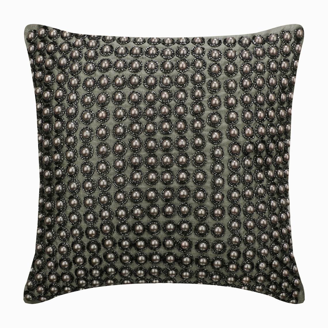 Decorative 16"x16" Pearls Beaded Gray Silk Pillows For Couch, Precious Pearls