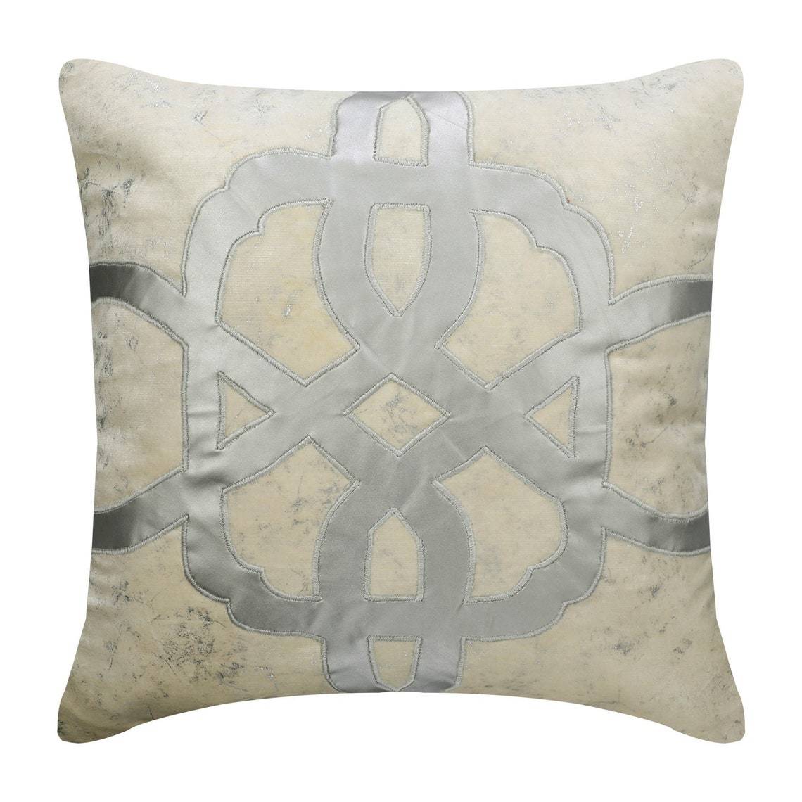 Decorative 16"x16" Greek Applique Foil Ivory Velvet Throw Pillow - Greek Electra
