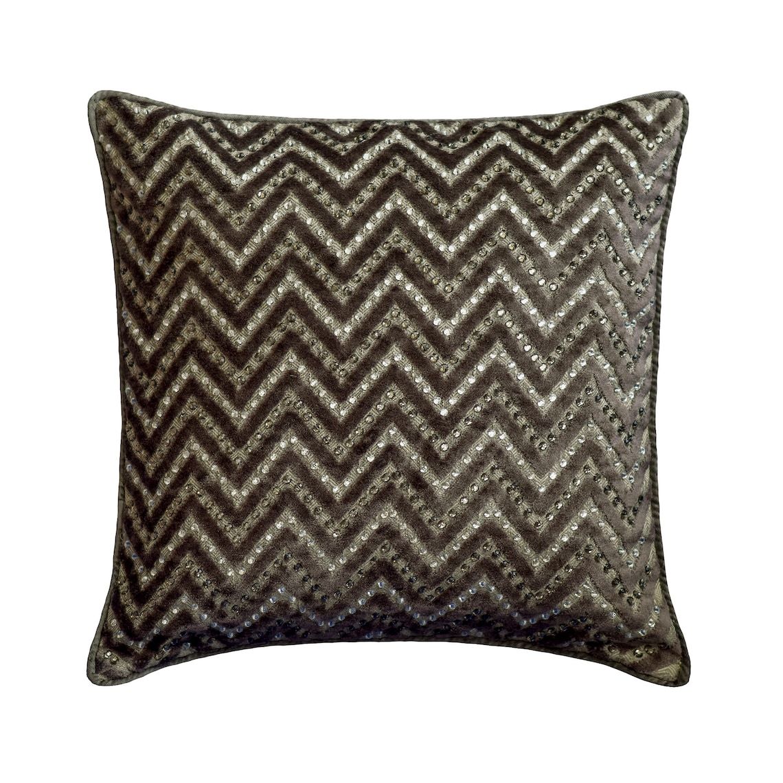 Decorative 16"x16" Embroidered Grey Velvet Pillow Cover - Crystal Chevron