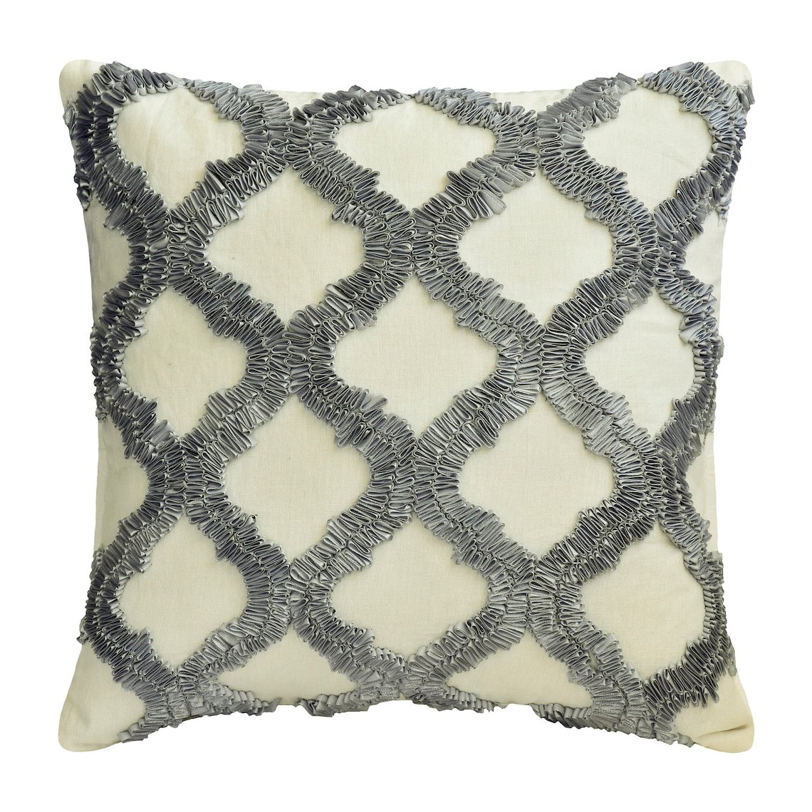 Grey Linen Ribbon Embroidery 16"x16" Throw Pillow Cover - Quilling Grey