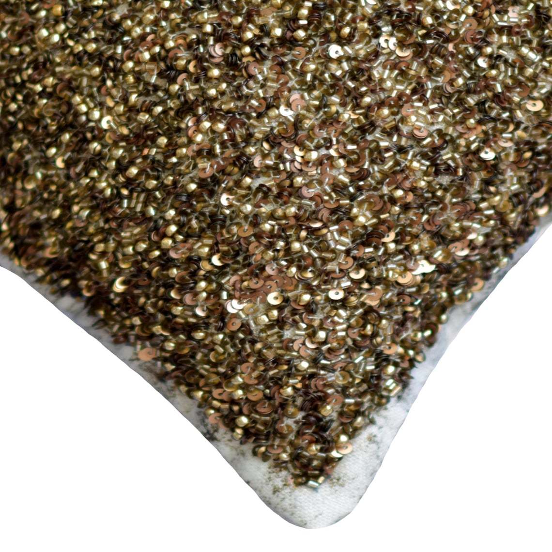 Brown Linen Sequins and Embroidery 16"x16" Throw Pillow Cover Brown Dazzled
