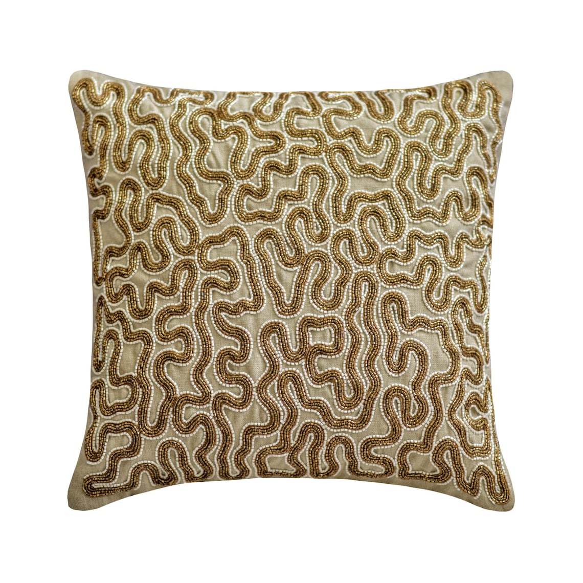 Gold Linen Beaded & Abstract 16"x16" Throw and 50 similar items