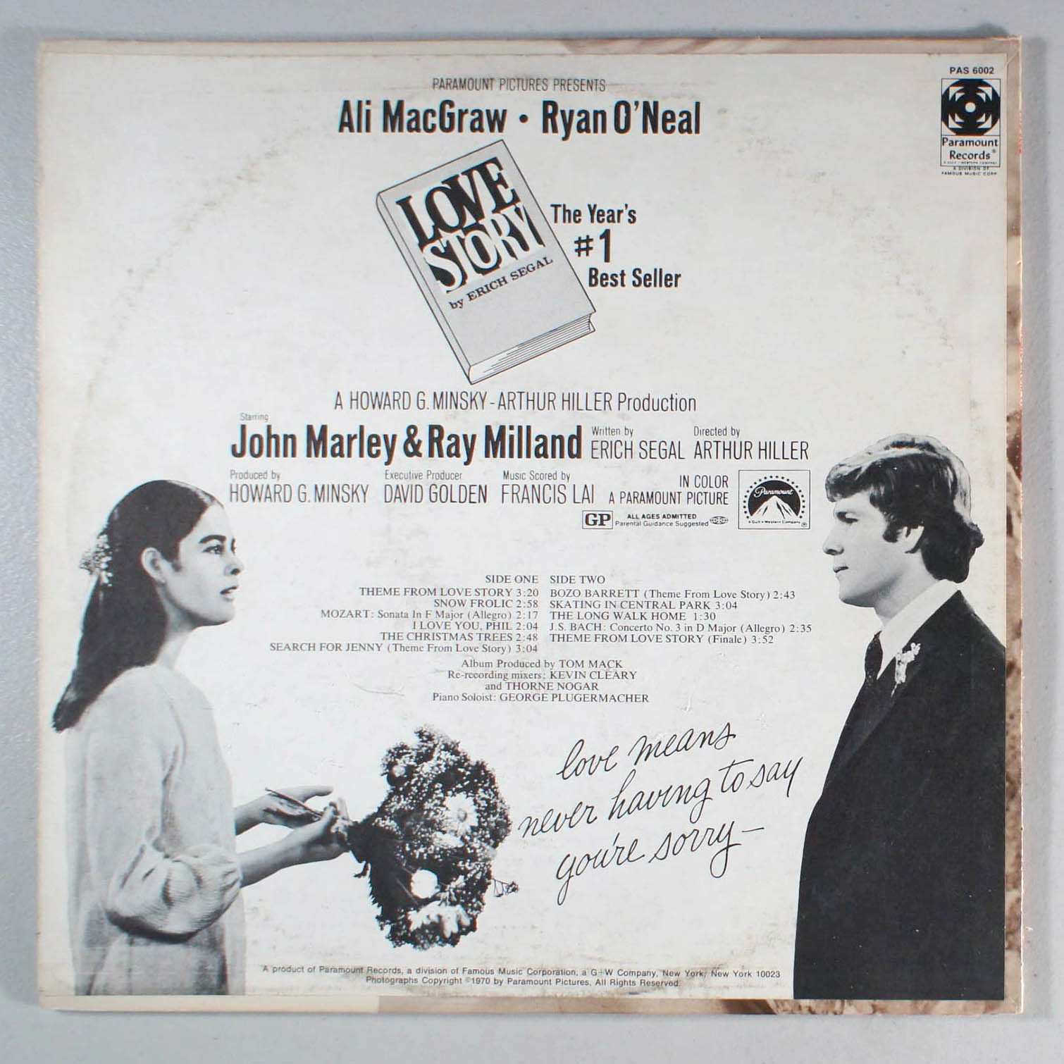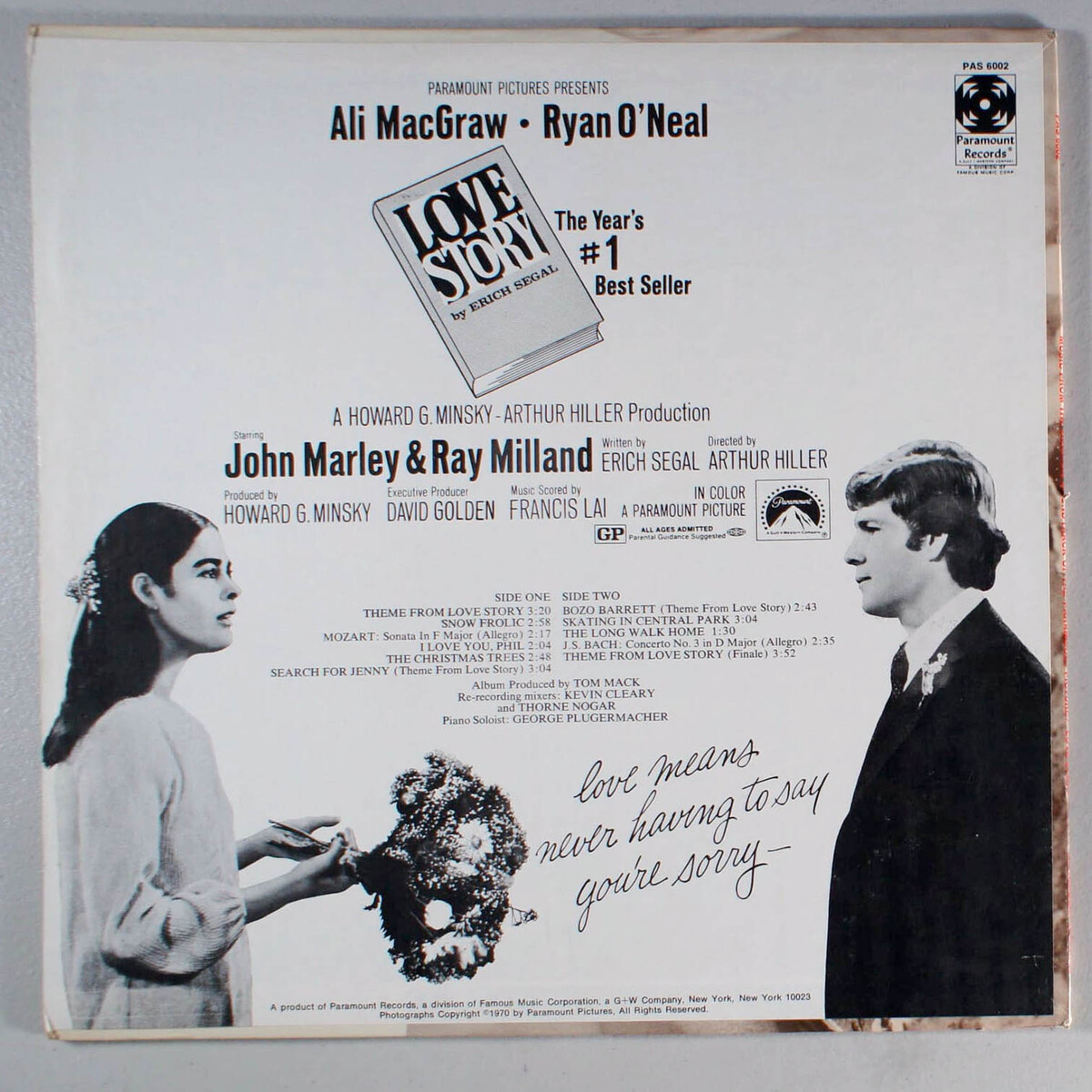 Love Story (1970) Vinyl LP Ryan O'Neal, Soundtrack, Arthur Hiller, Francis Lai