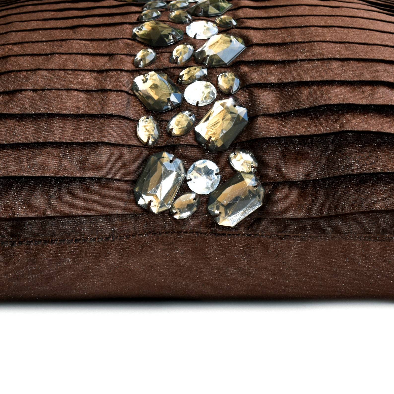 The Homecentric Crystal Dreams - Art Silk Brown Decorative Lumbar Pillow Cover
