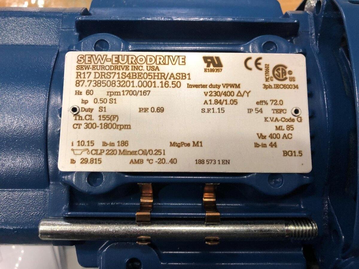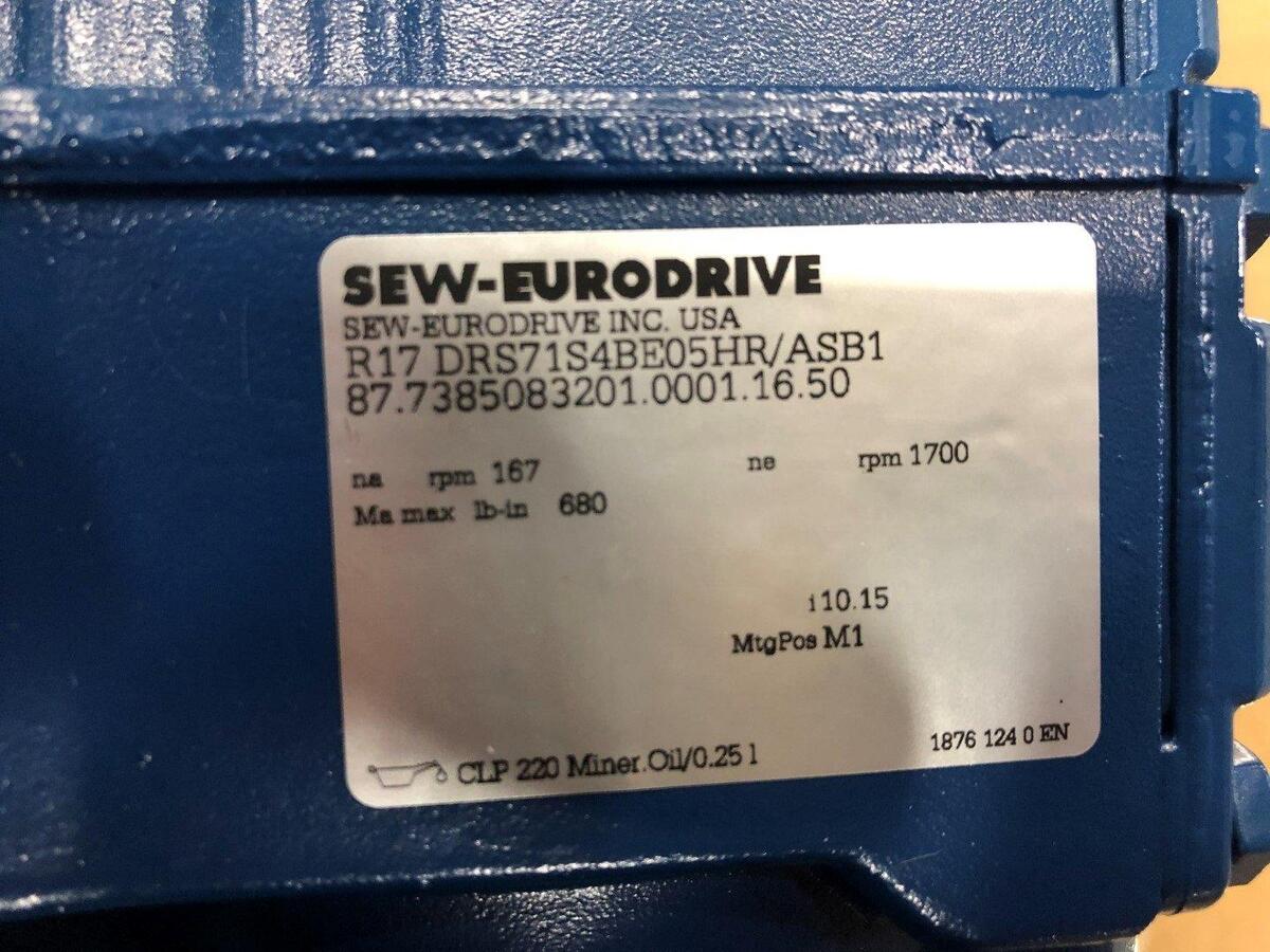 Sew-Eurodrive R17-DRS71S4BE05HR/ASB1 Gearmotor 0.5HP, Reducer Ratio 10.15:1