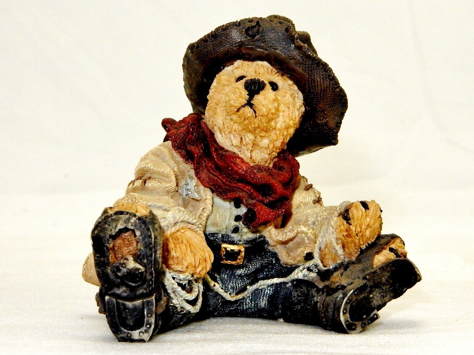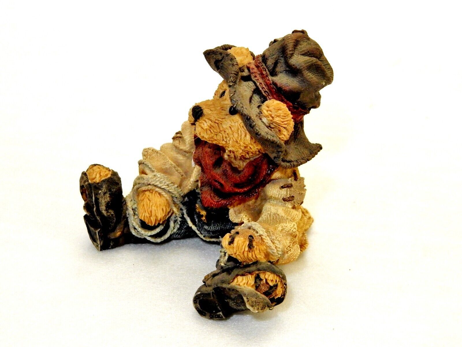 Add some charm to your collection with the Hop-A-Long figurine from the 1994 Boyd's Collection. This small resin figurine features a bear dressed as a deputy in raggedy clothing and boots, and is perfect for any room in your home. The intricate details and high-quality material make it a great addition to your collection. Don't miss out on the chance to own this unique figurine.