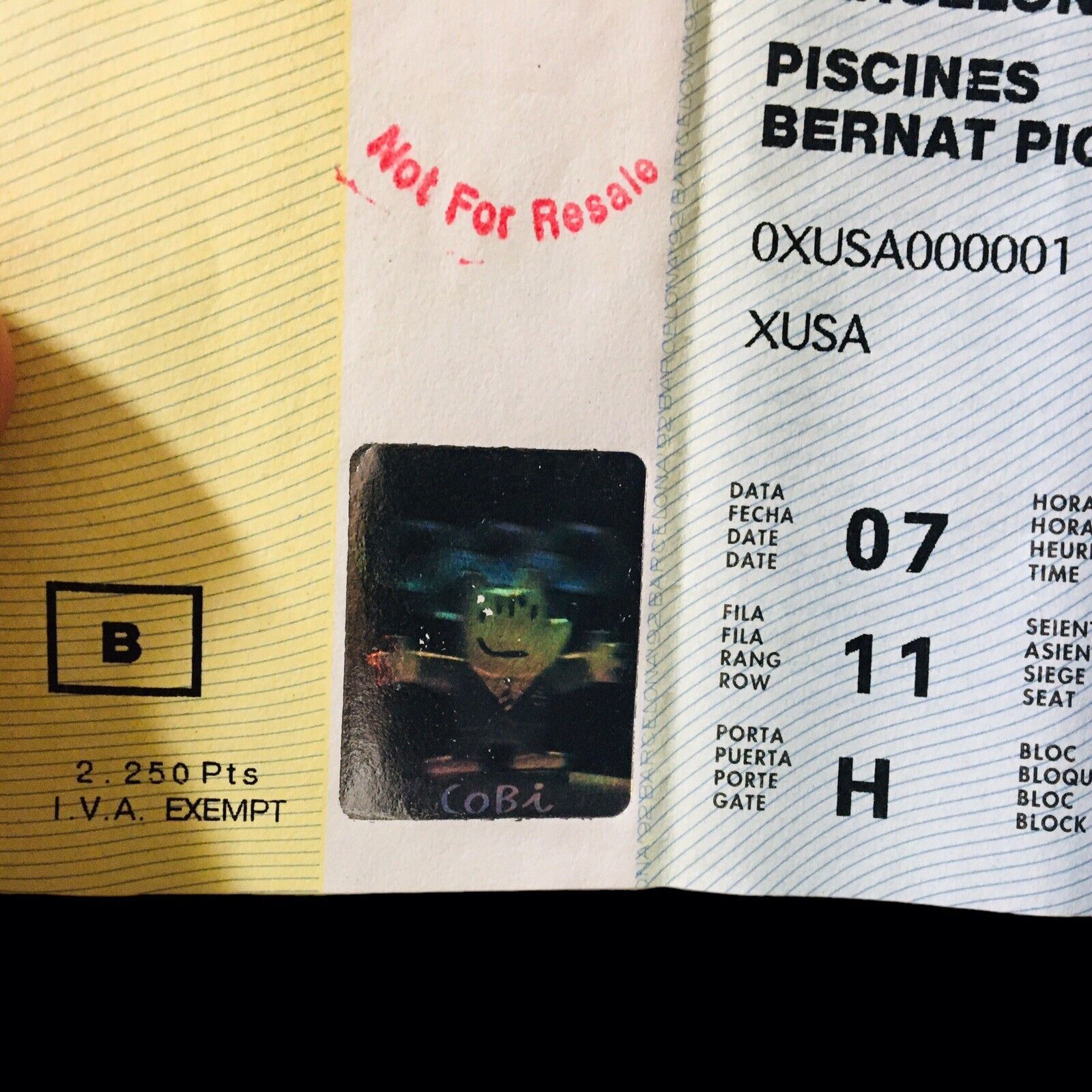 Ticket "B" 07 15:00