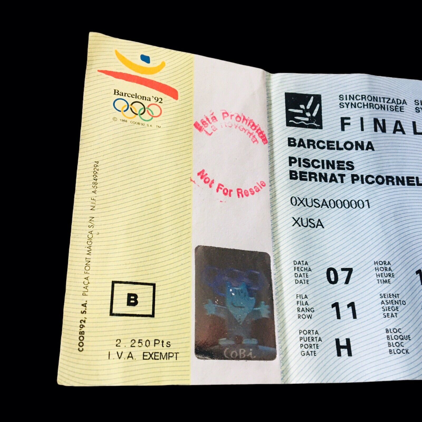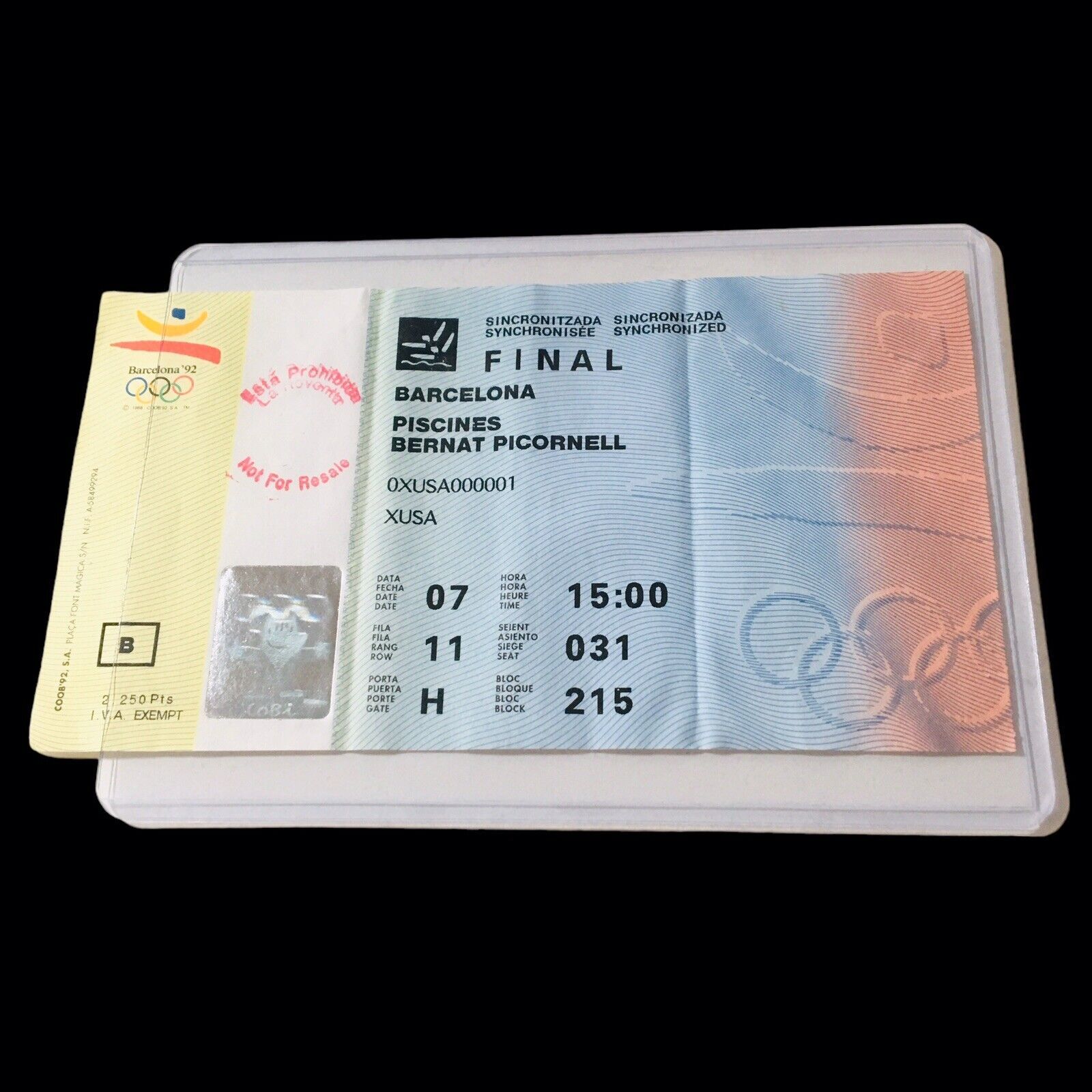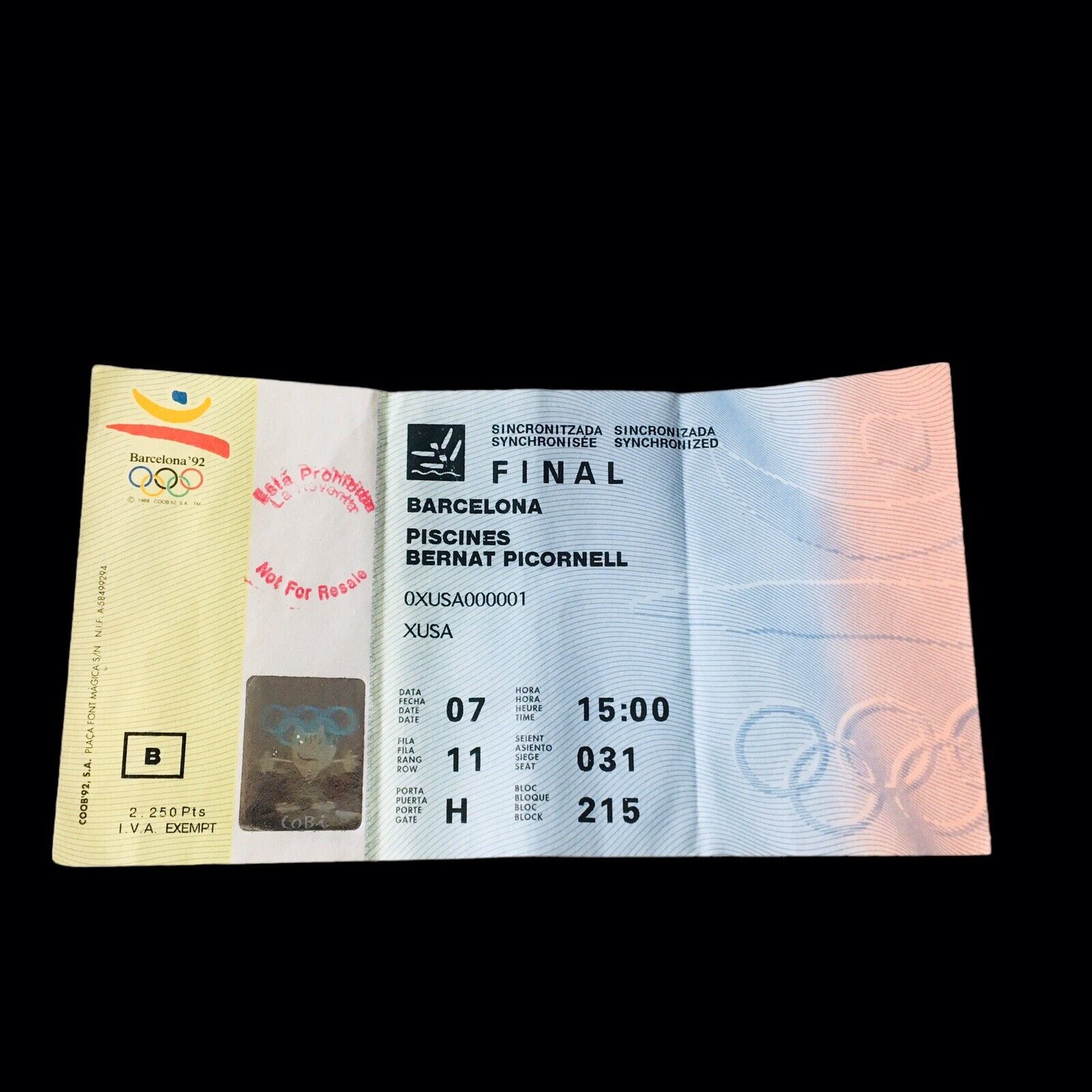 1992 BARCELONA SYNCRONIZED SWIMMING OLYMPIC PISCINES FINAL TICKET STUB RARE "B"