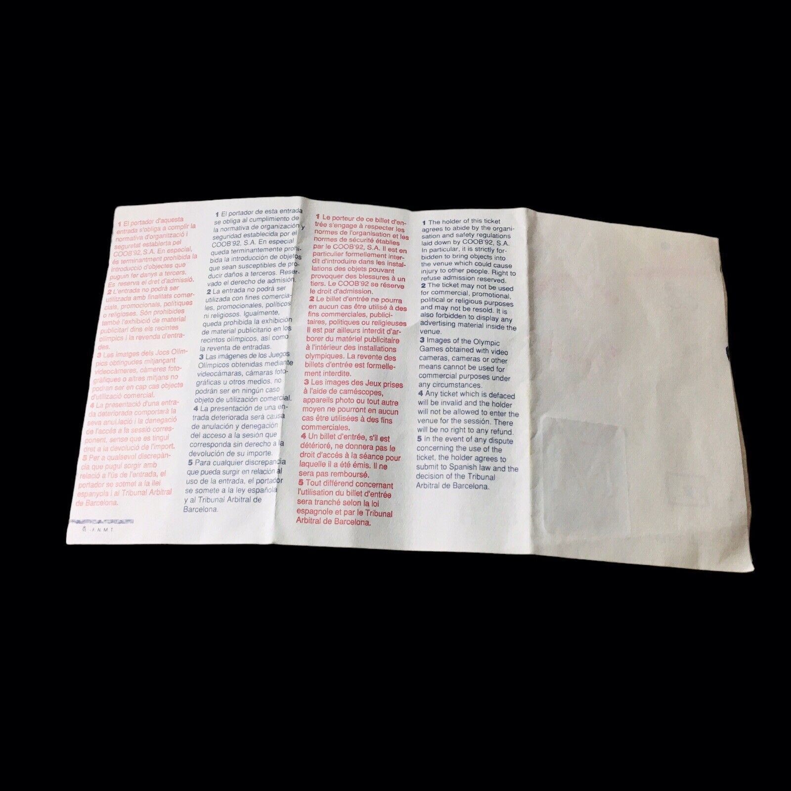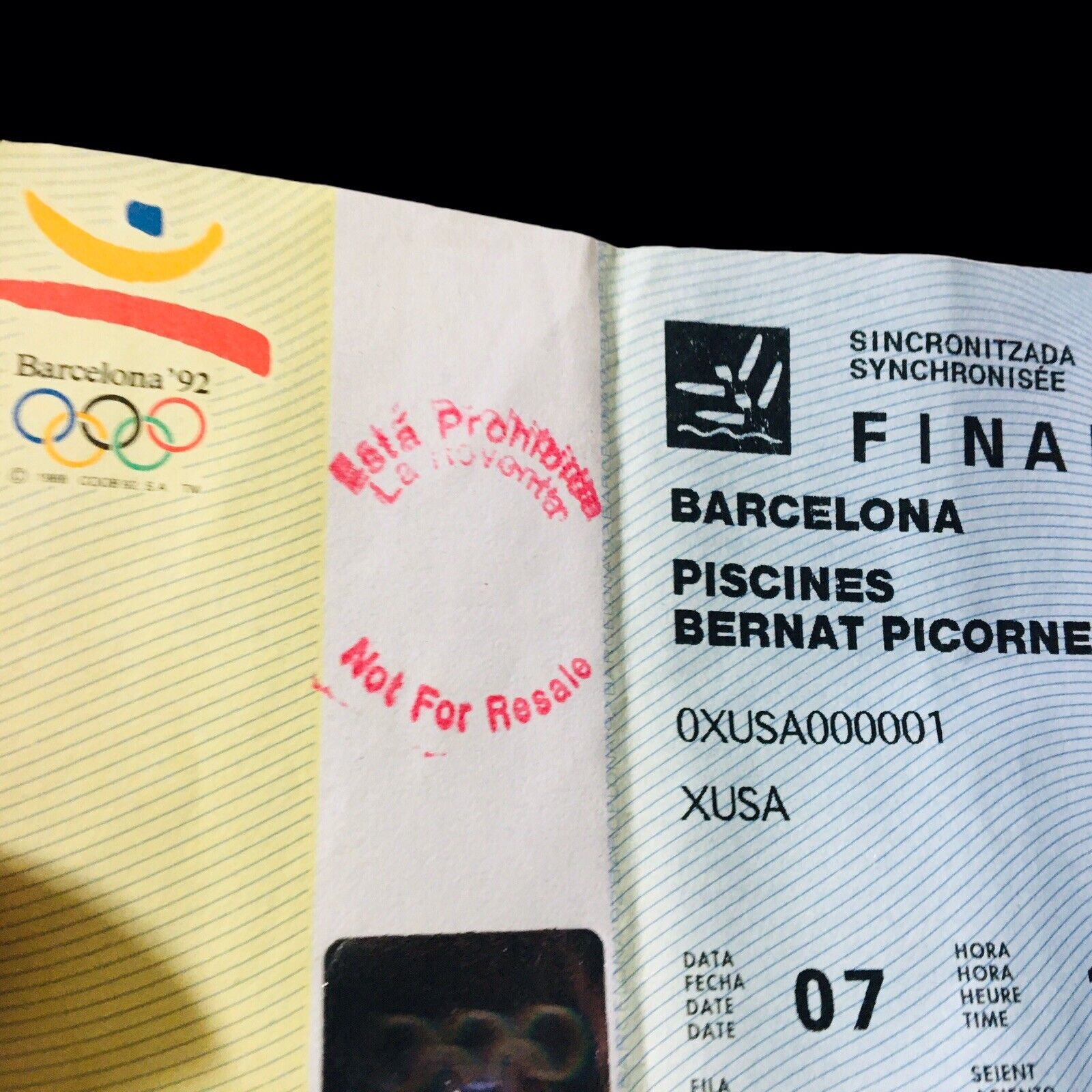 1992 BARCELONA SYNCRONIZED SWIMMING OLYMPIC PISCINES "FINAL" TICKET STUB RARE