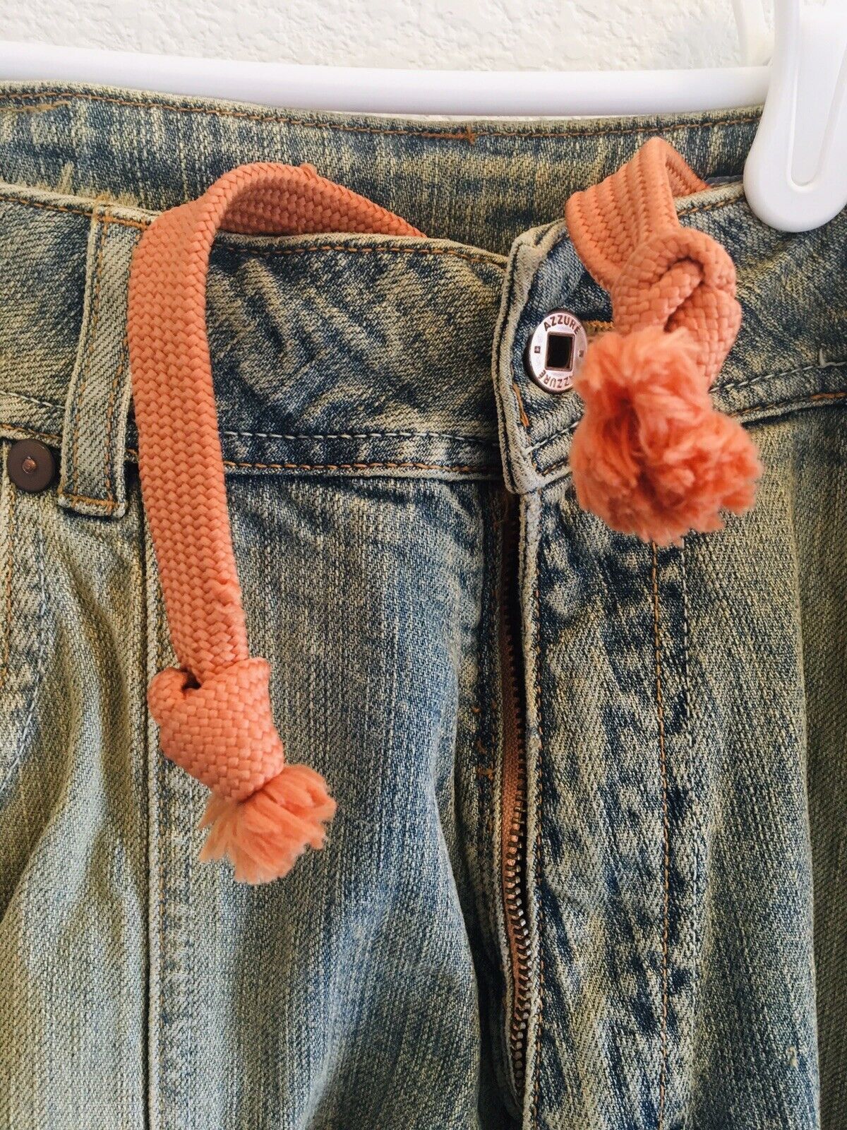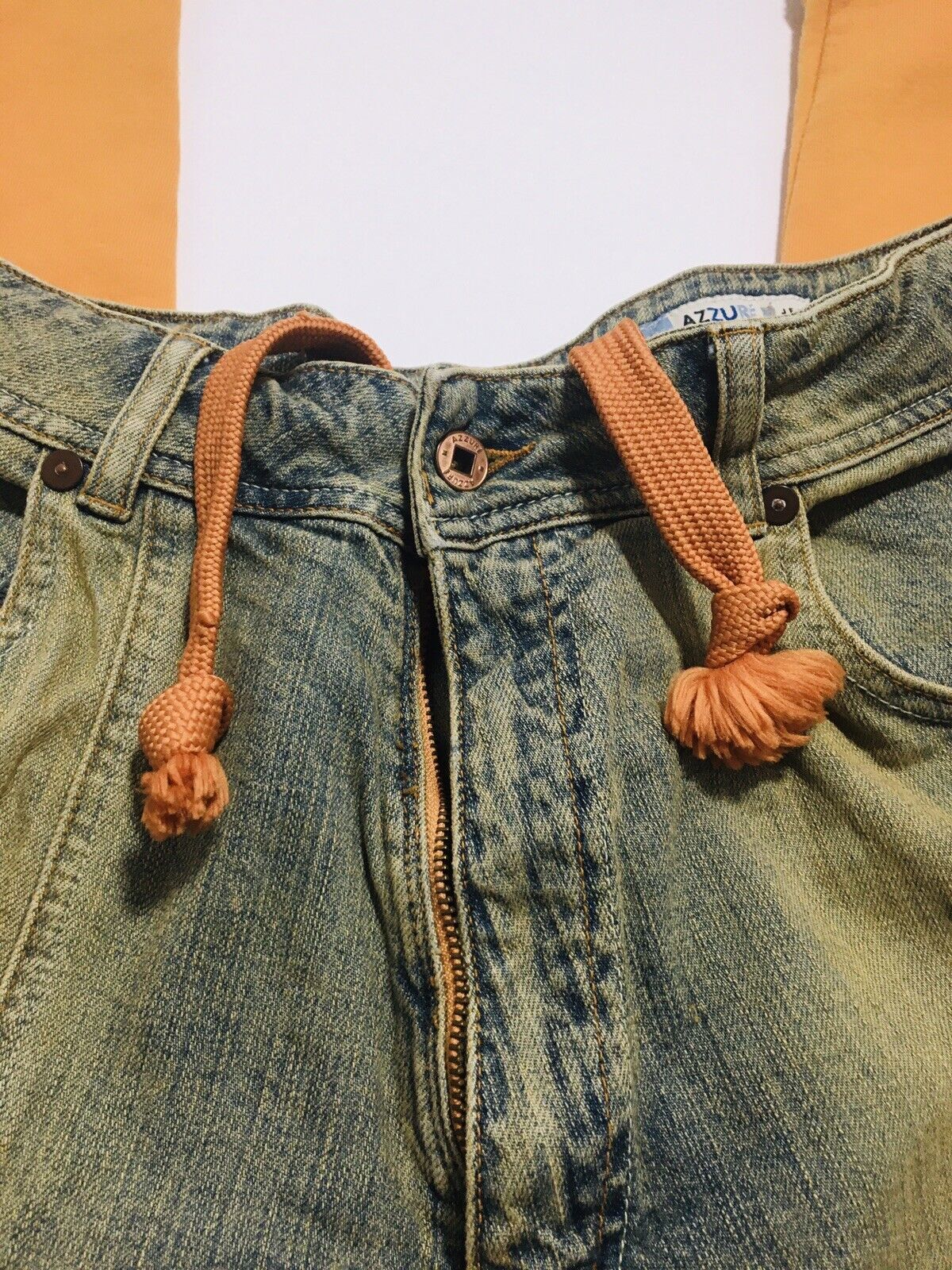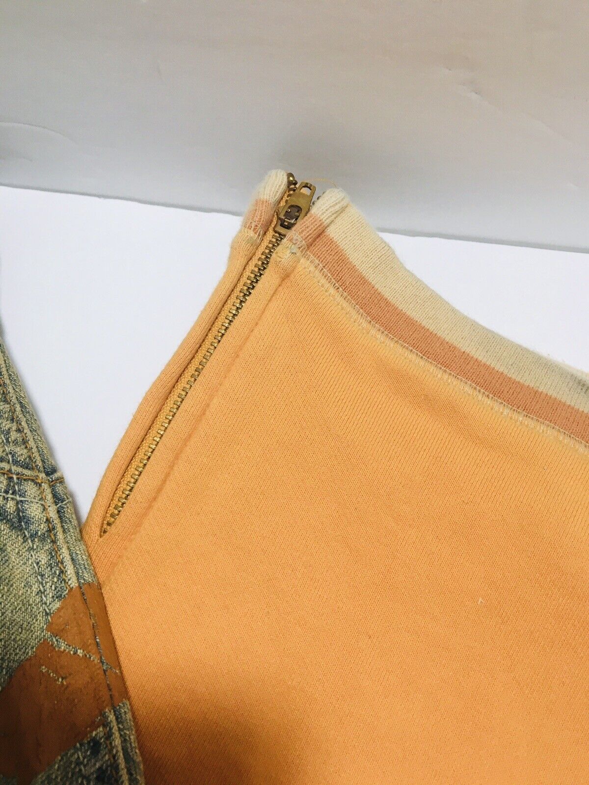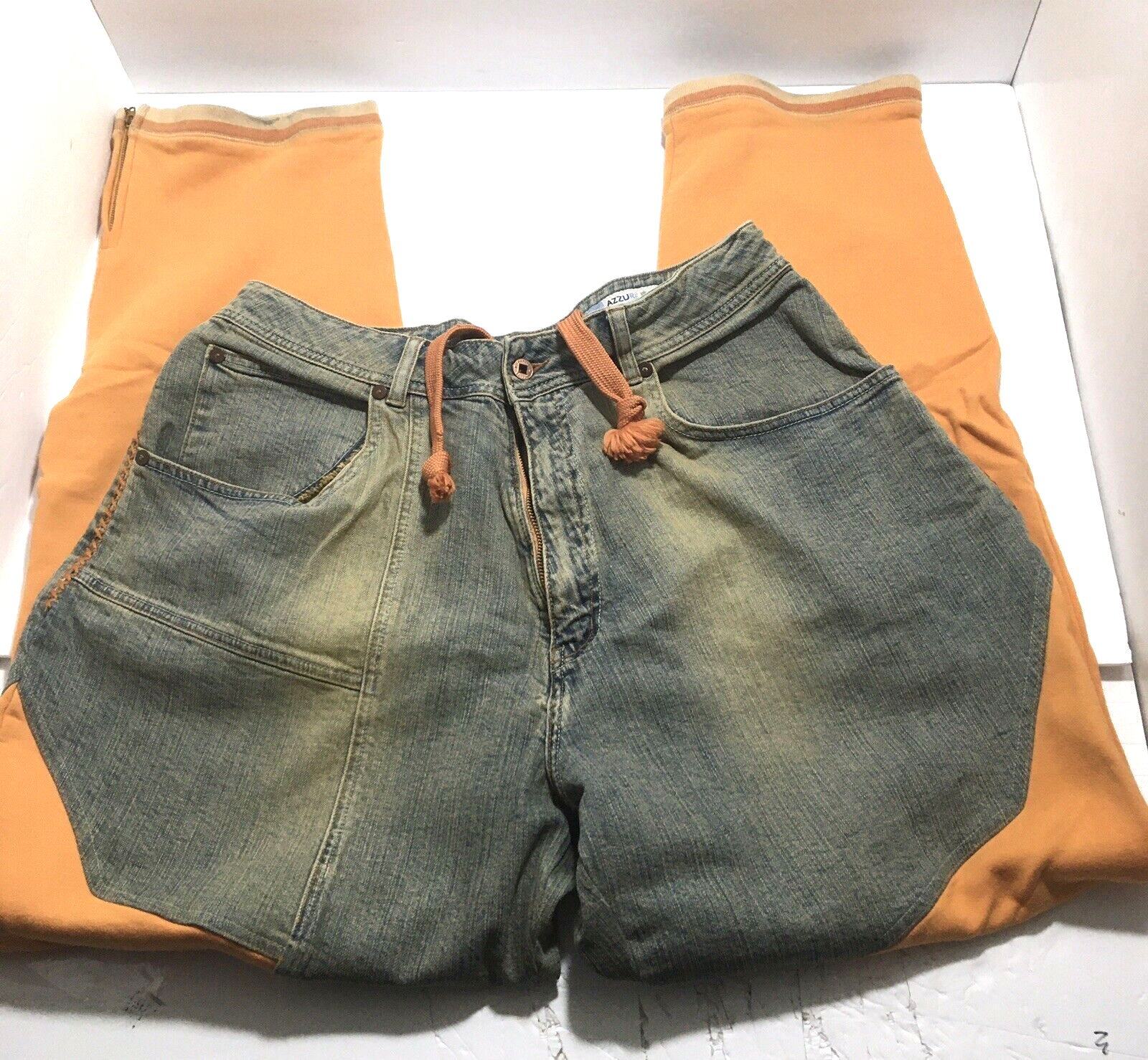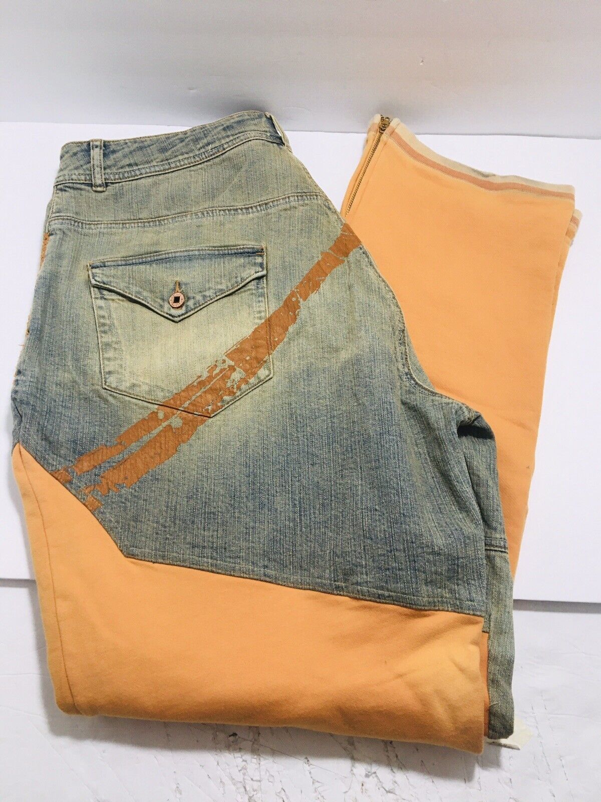 Vtg. Azzure Jeans/Jogger Pants Men Size 34" x 33" Zip Leg Hip Hop Culture Multi-Color. The jogger, sweatpants part is a Pumpkin Orange color and the denim part is a Blueish/Gray color. These are truly unique and very comfortable. These I believe are from the mid to late 1990's. Great for traveling/driving/etc. Very nice overall. Bottoms have some light dirt from wearing and stepping...Just needs to be washed. i will leave this up to the buyer. Enjoy!
