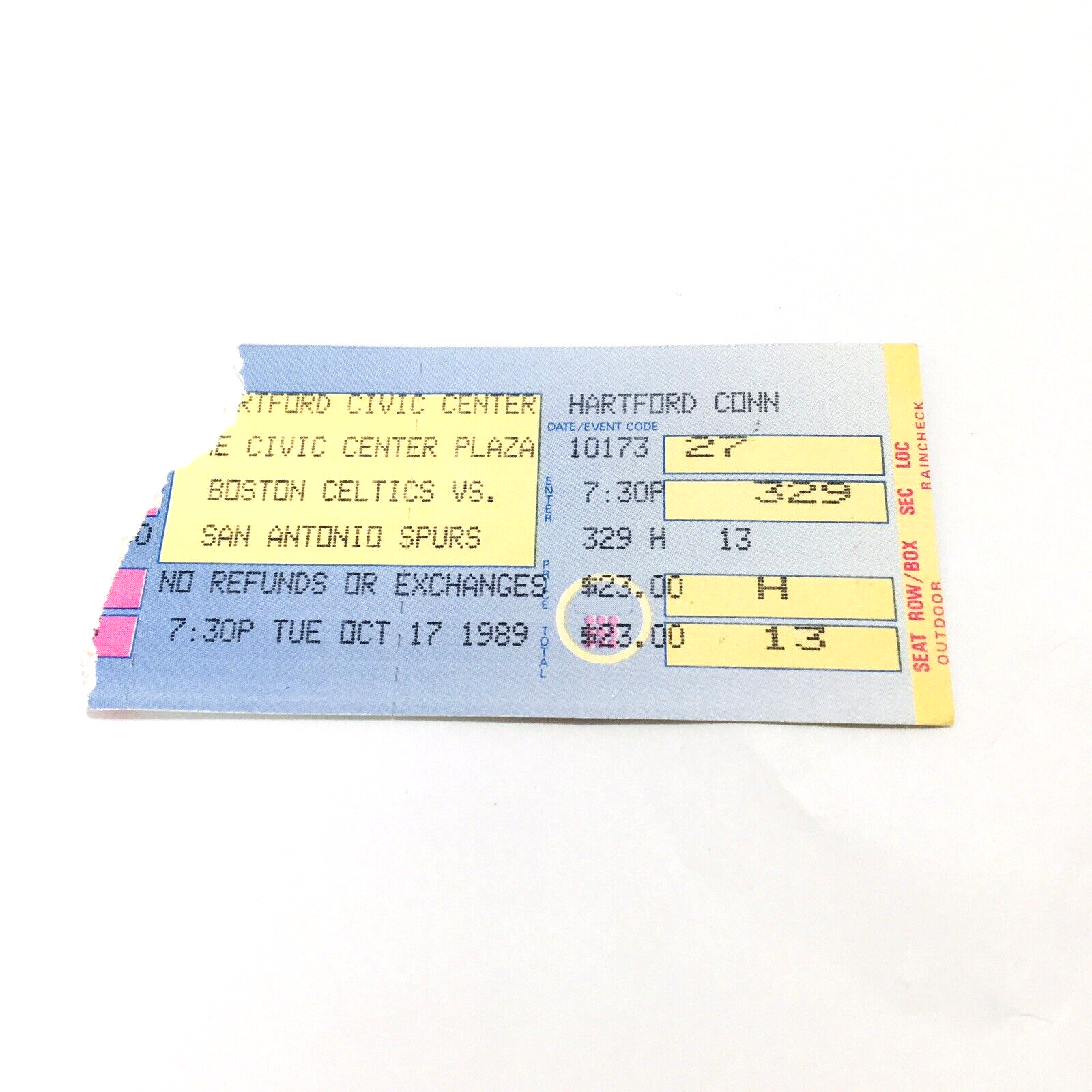 Boston Celtics vs. Spurs 1989 Ticket Stub Hartford David Robinson Rookie Year Larry Bird's Final Year!