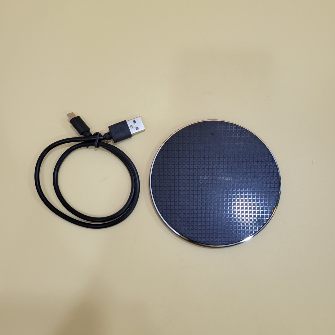 Round Wireless Charger, Black and Silver, Fast Charging