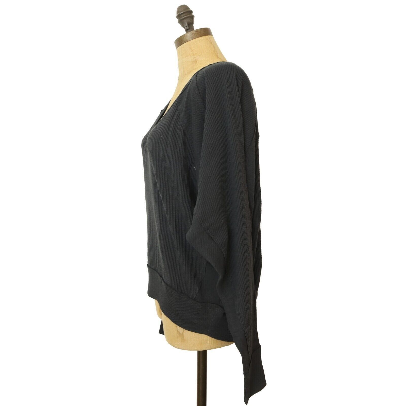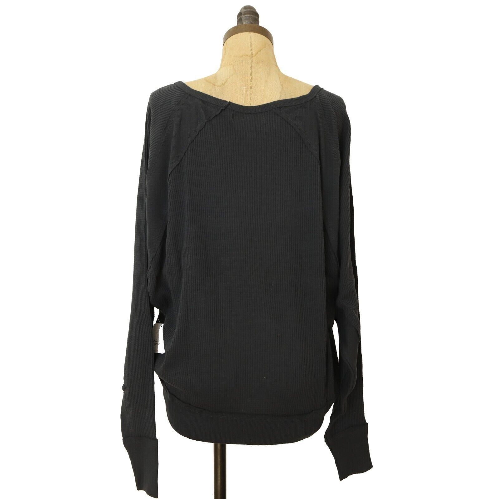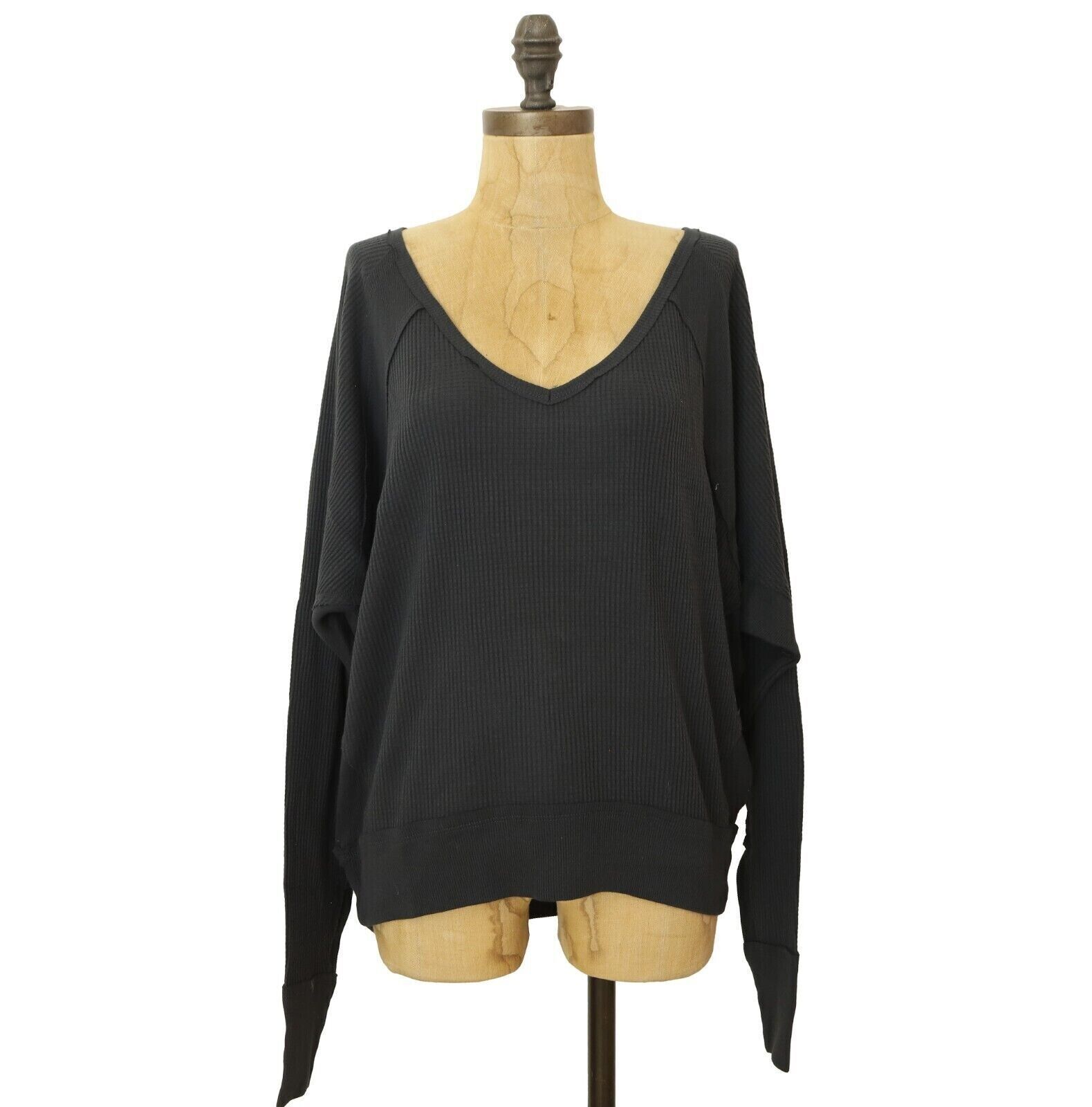 Free People Santa Clara Thermal Top Dolman Sleeve V Neck Black size Medium M