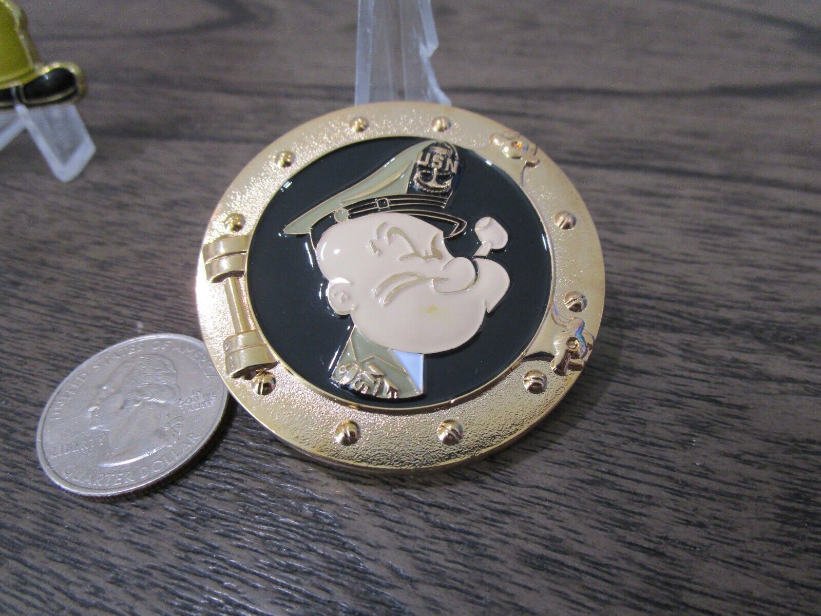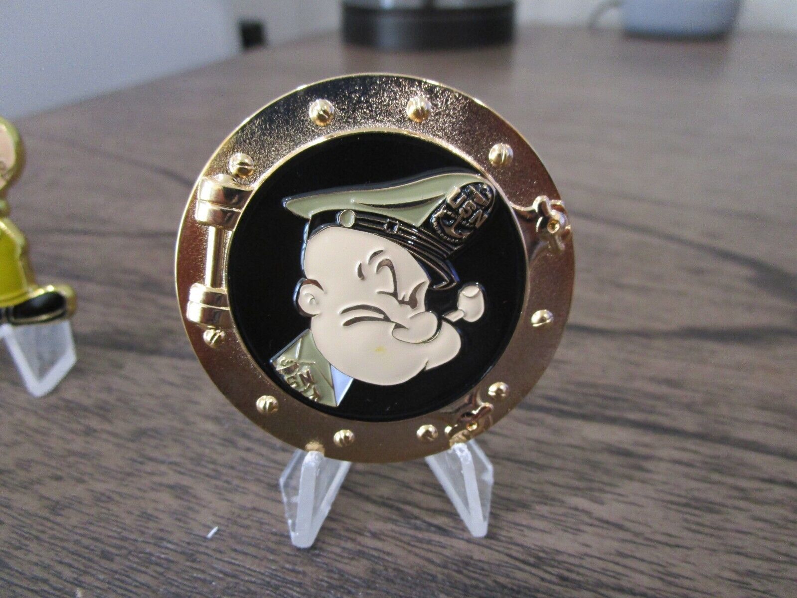 Lot of Two Popeye The Sailor Navy Chief Ask The Chief Anchors Aweigh CPO Challenge Coins
