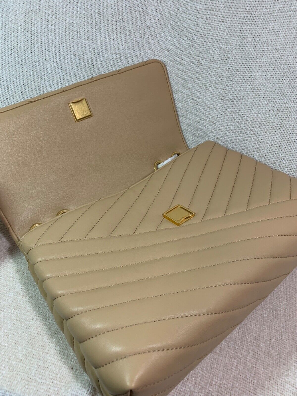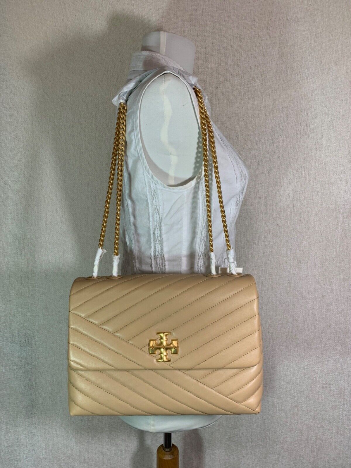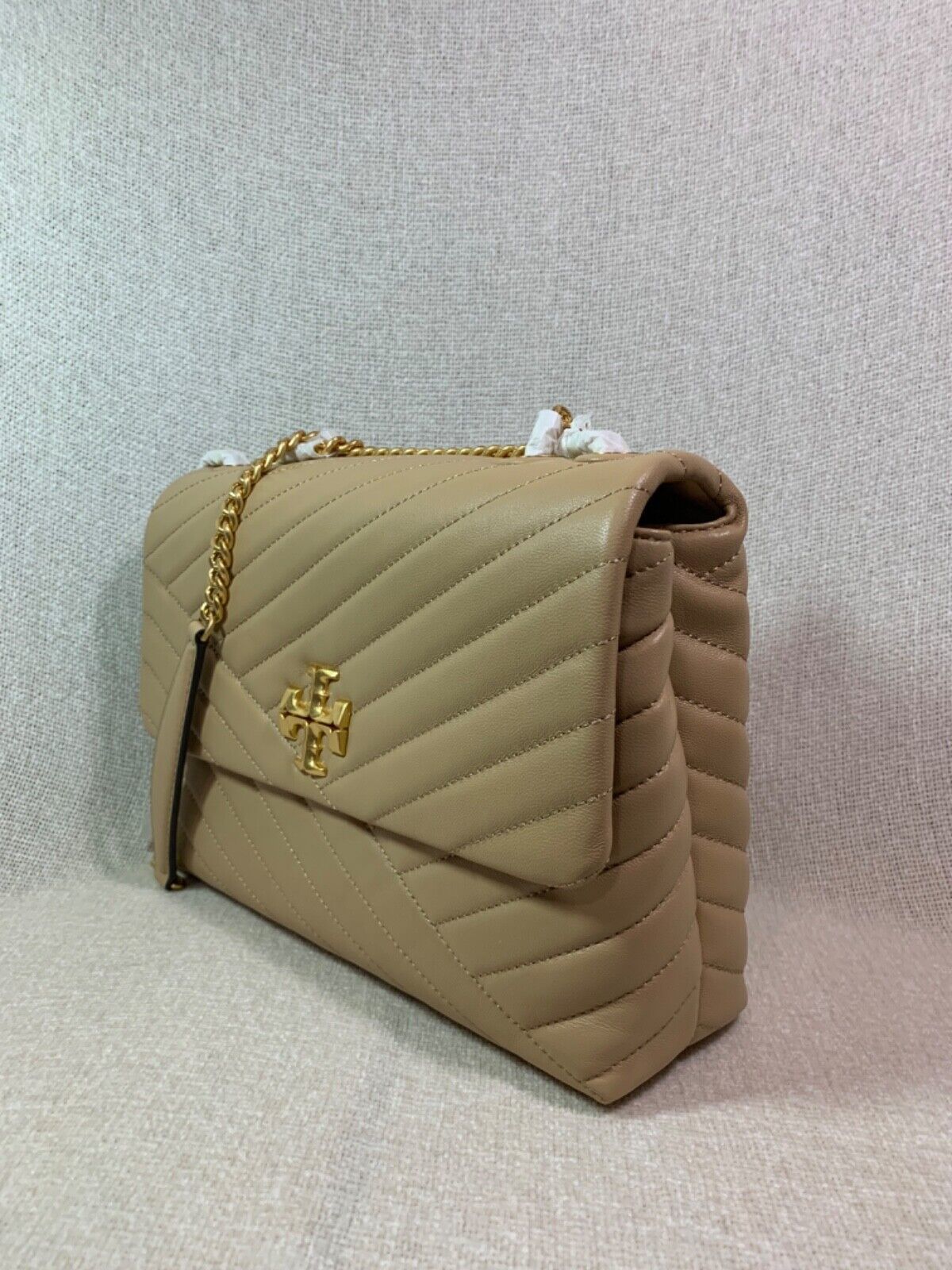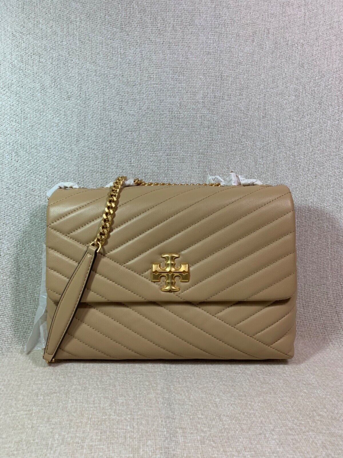 You Are Looking At A Gorgeous Desert Dune Leather Kira Chevron Convertible Shoulder Bag/Cross Body Bag By Tory Burch