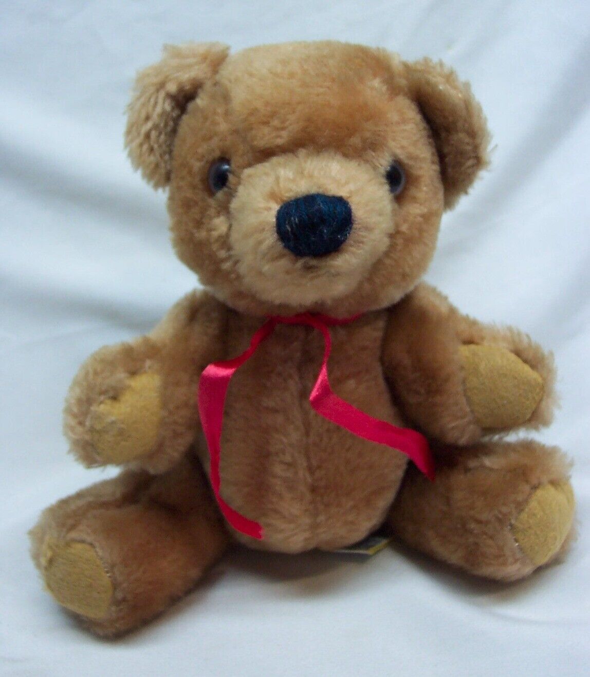 VINTAGE Dakin 1981 LITTLE BROWN TEDDY BEAR WITH RED BOW 6" Plush Stuffed Animal