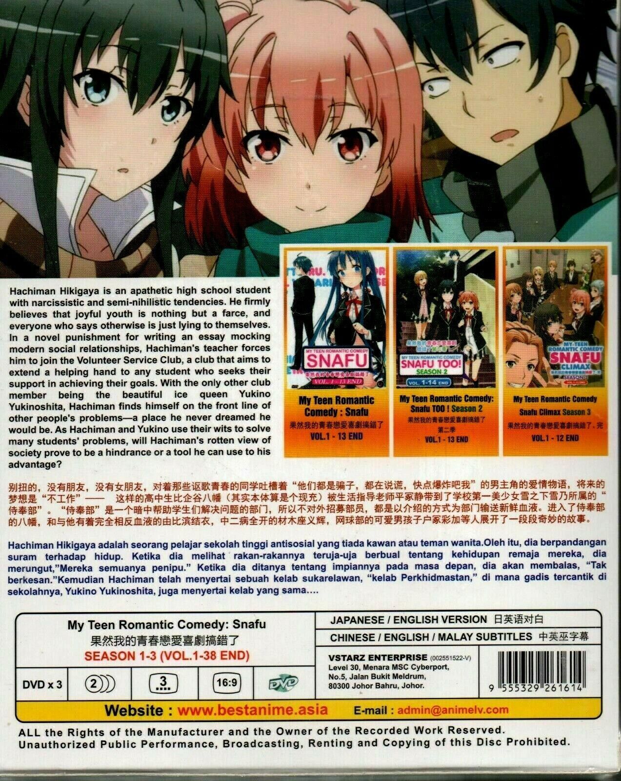 DVD My Teen Romantic Comedy SNAFU Season 1-3 Vol.1-39 End English Dubbed
