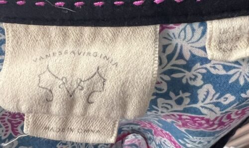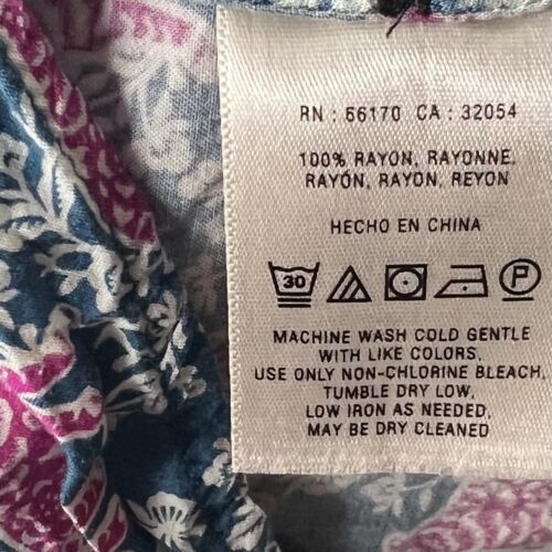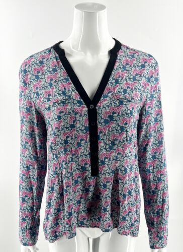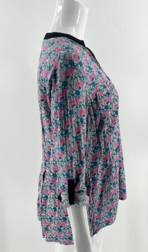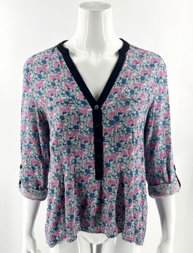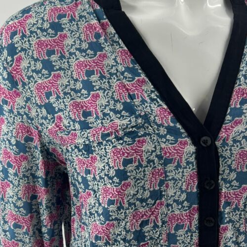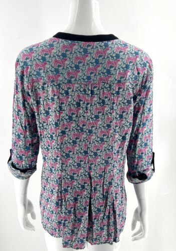 Vanessa Virginia Anthropologie Top Size 14 Blue Pink Tiger Print Roll Tab Sleeve