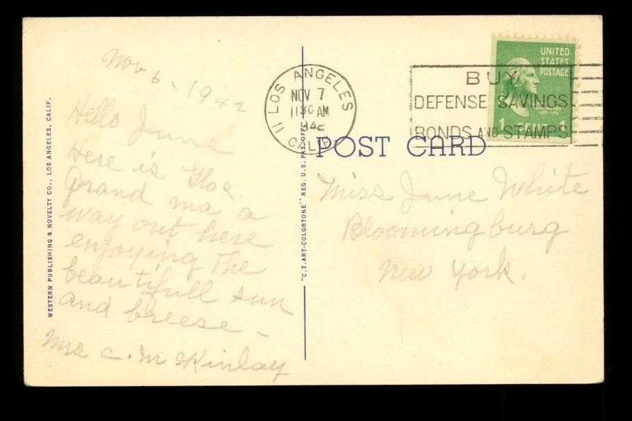 Vintage Linen Postcard Souvenir Jane Withers Westwood California 1942 Cancel