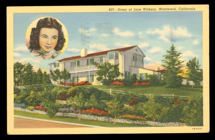 Vintage Linen Postcard Souvenir Jane Withers Westwood California 1942 Cancel. Smoke and pet free environment.