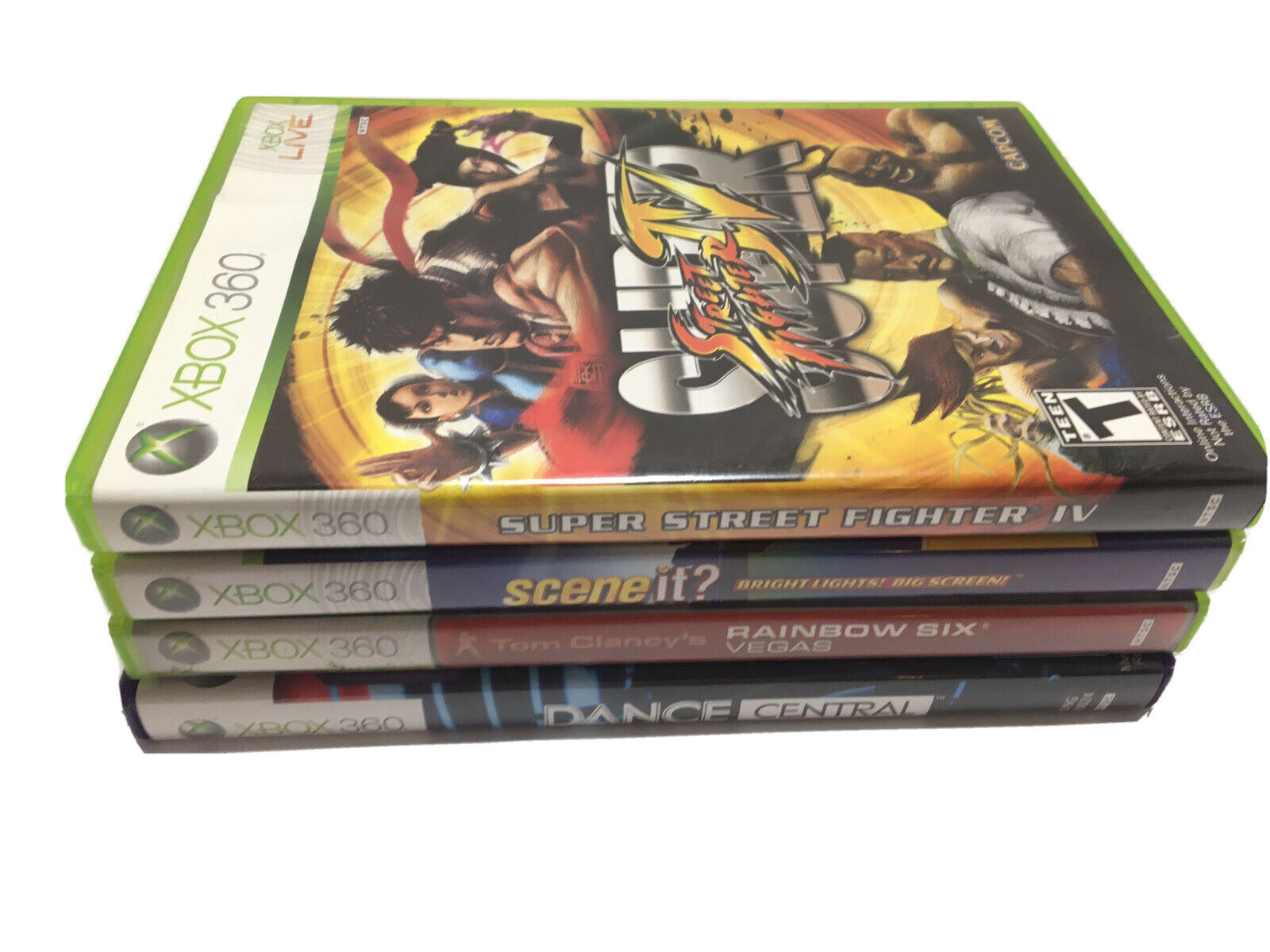Xbox 360 4 Game Lot- Scene it? Street Fighter 4, RainbowSix Vegas, Dance Central