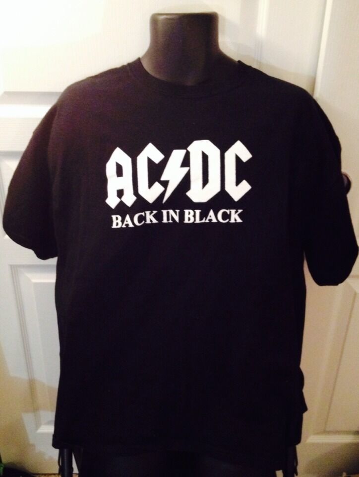 AC DC BACK IN BLACK T SHIRT MEN'S SIZE XL ROCK GROUP BASIC TEE SHORT WHITE LETTE
