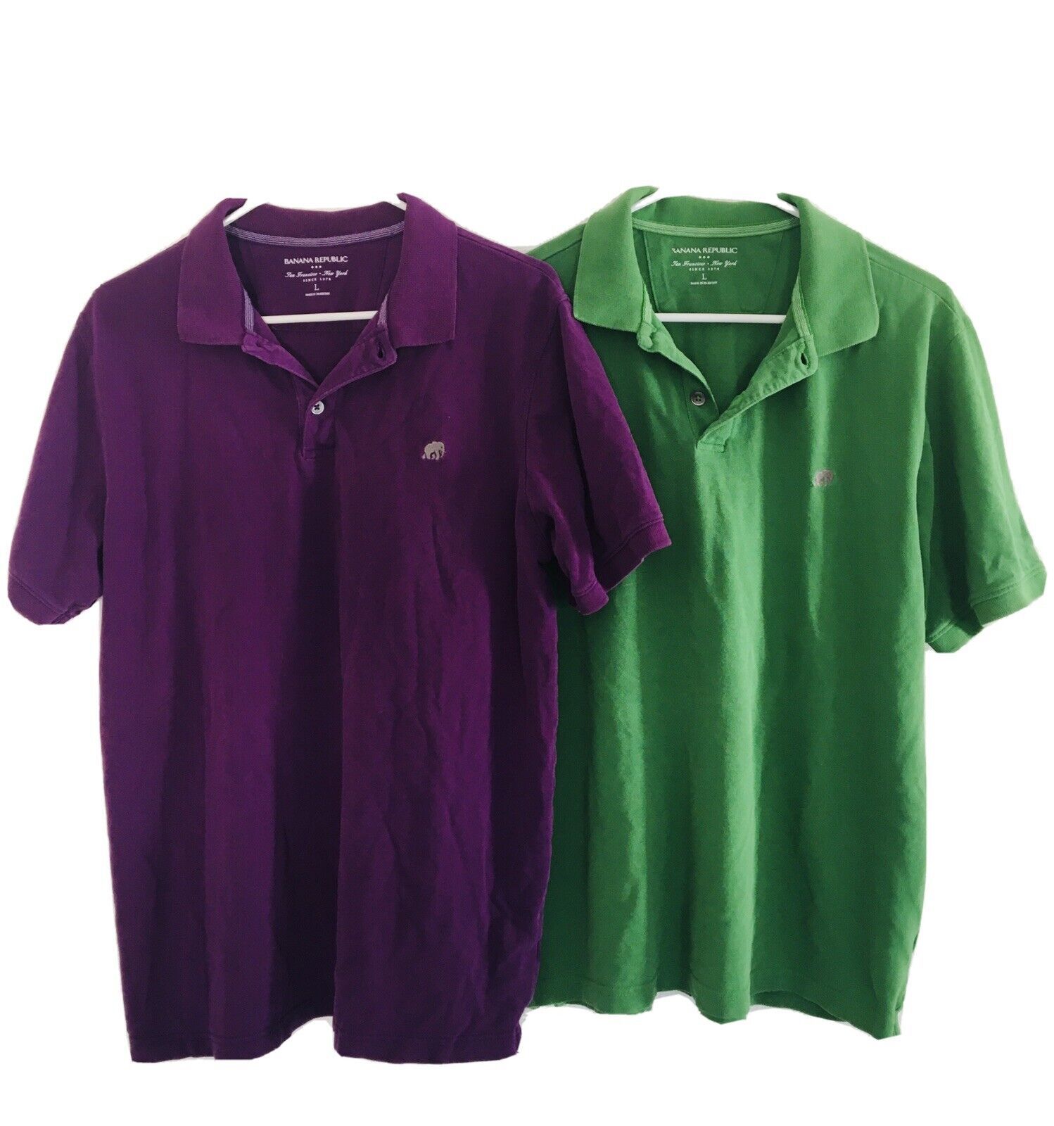 Banana Republic (Lot of 2) Men's Sz L Casual Polo Shirts (1) Purple (1) Green Very Good Condition!