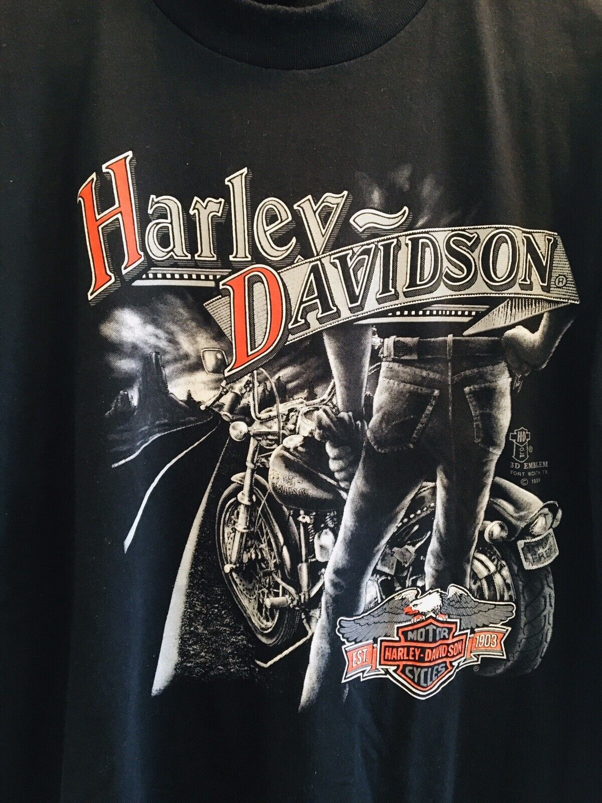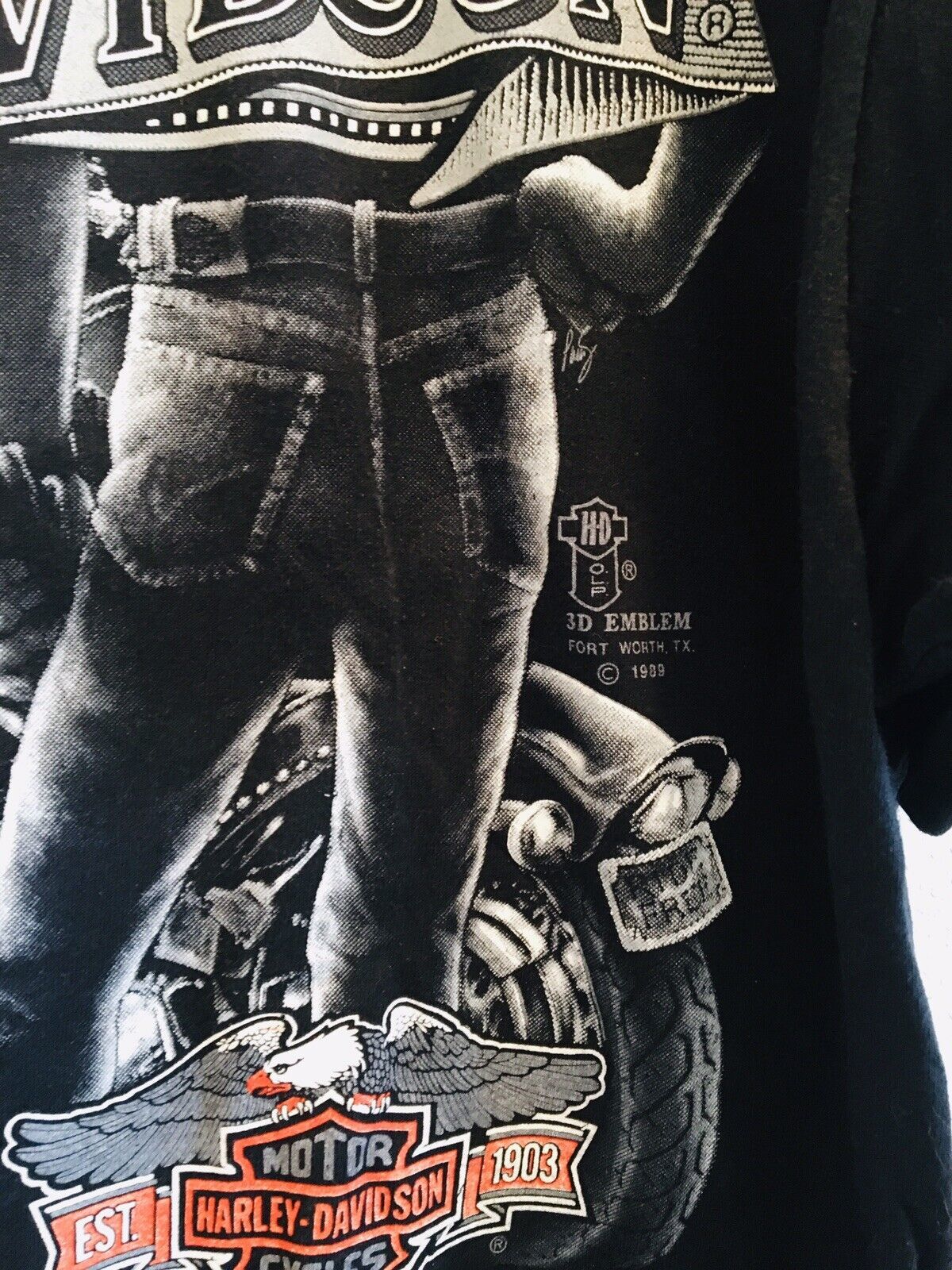 Vtg 1980s "89" Harley Davidson Man Jeans 3D Emblem Shirt New Jersey RARE XL