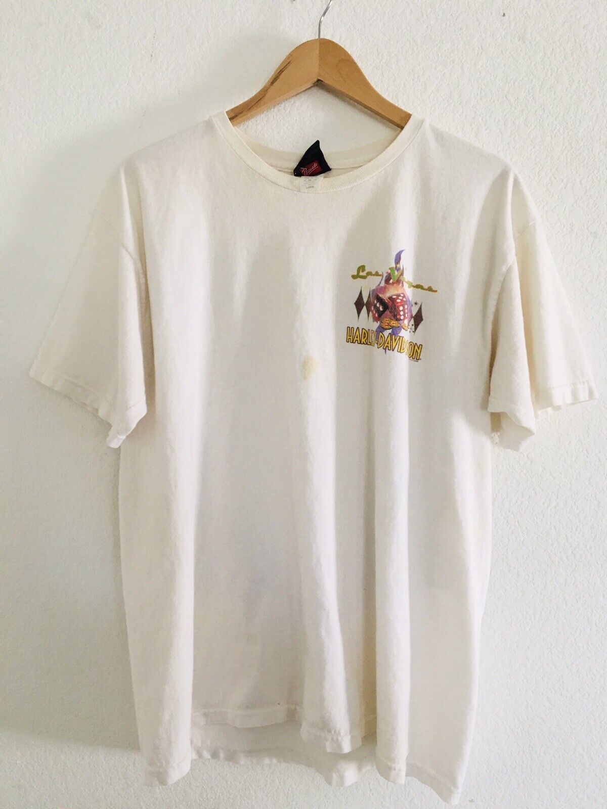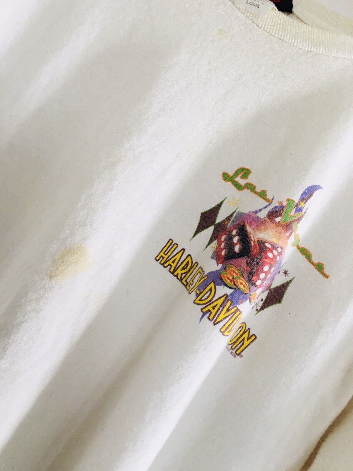 Harley-Davidson Bravado Double Sided 2009 Las Vegas Girl Nevada Men's Sz L Faded Stained Small Hole grunge worn well!