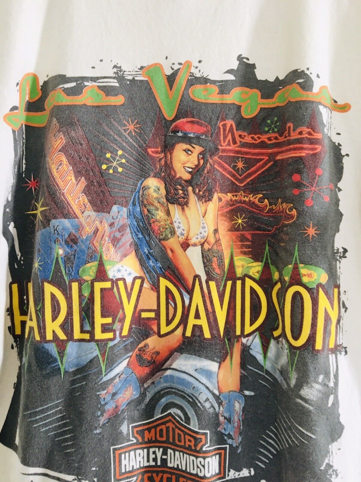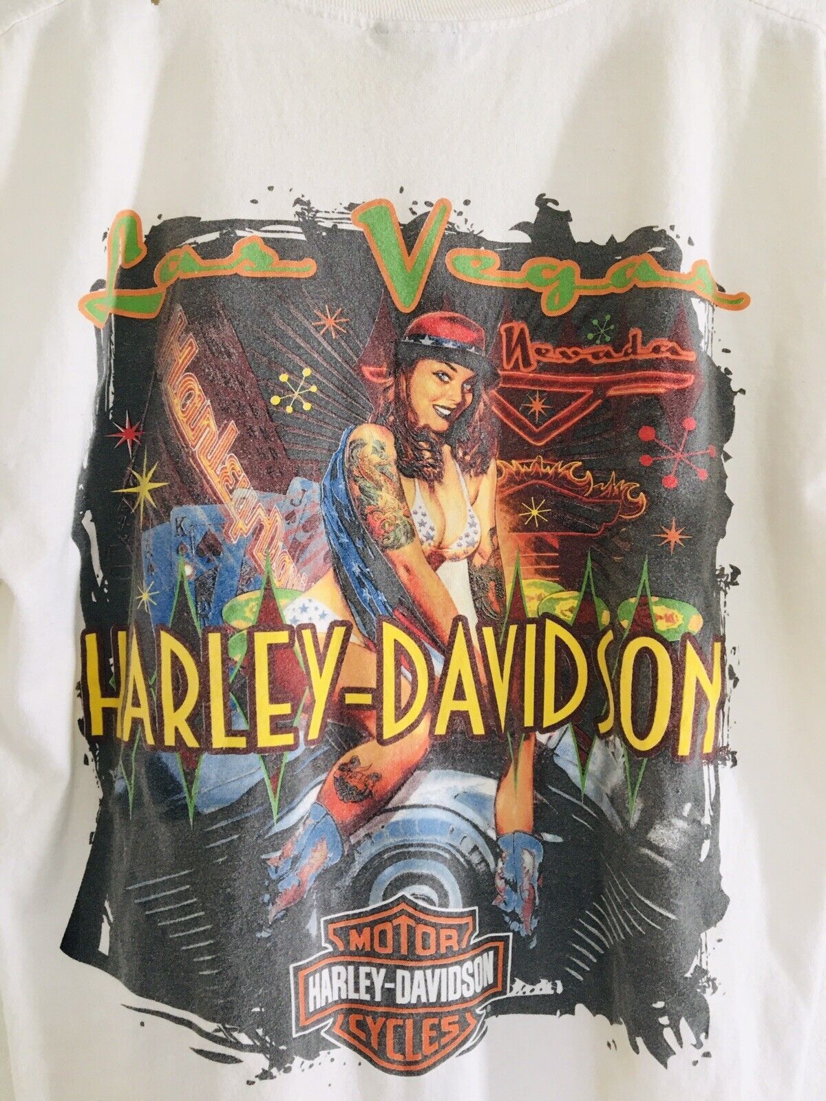 Harley-Davidson Bravado Double Sided 2009 Las Vegas Girl Nevada Men's Sz L Faded