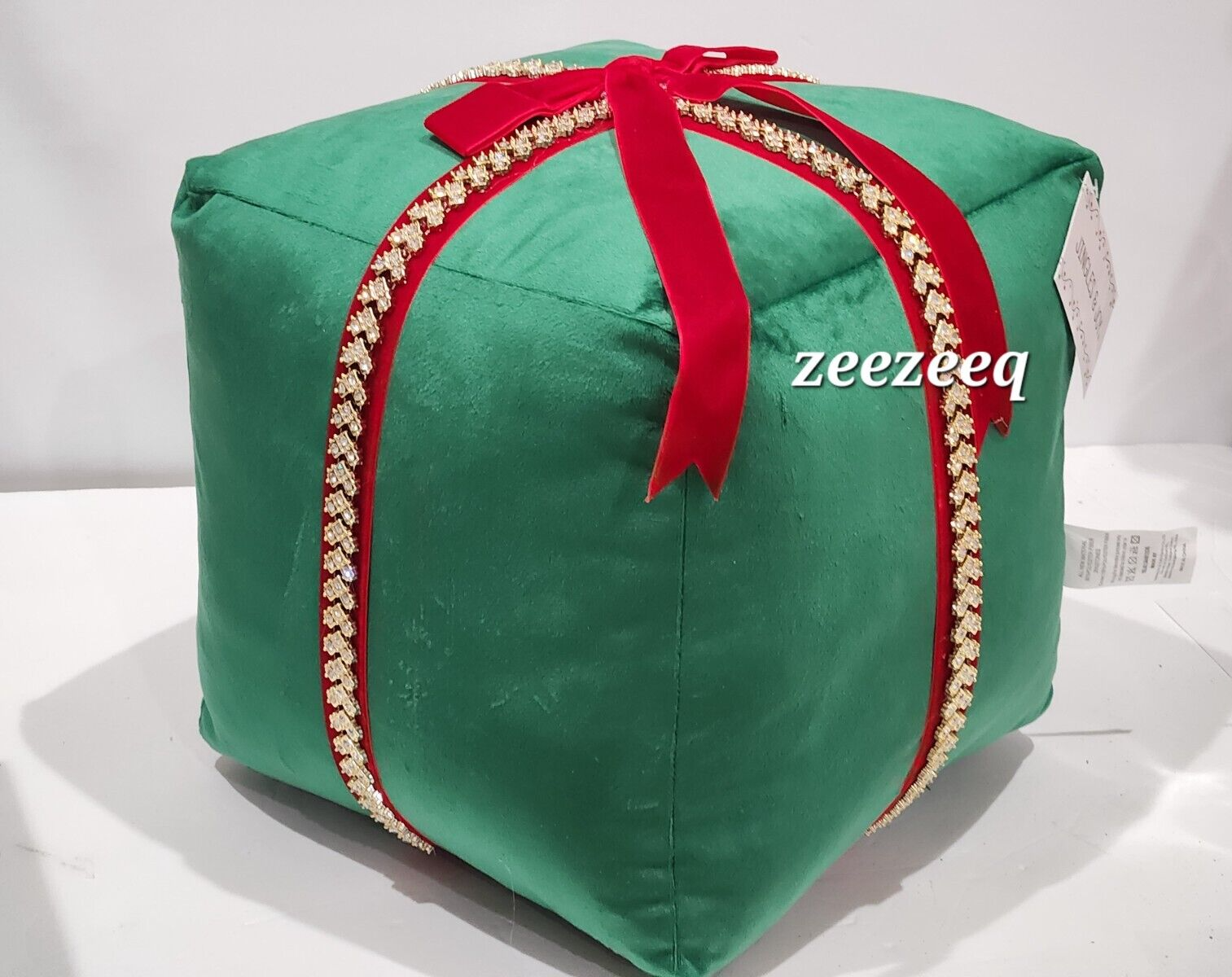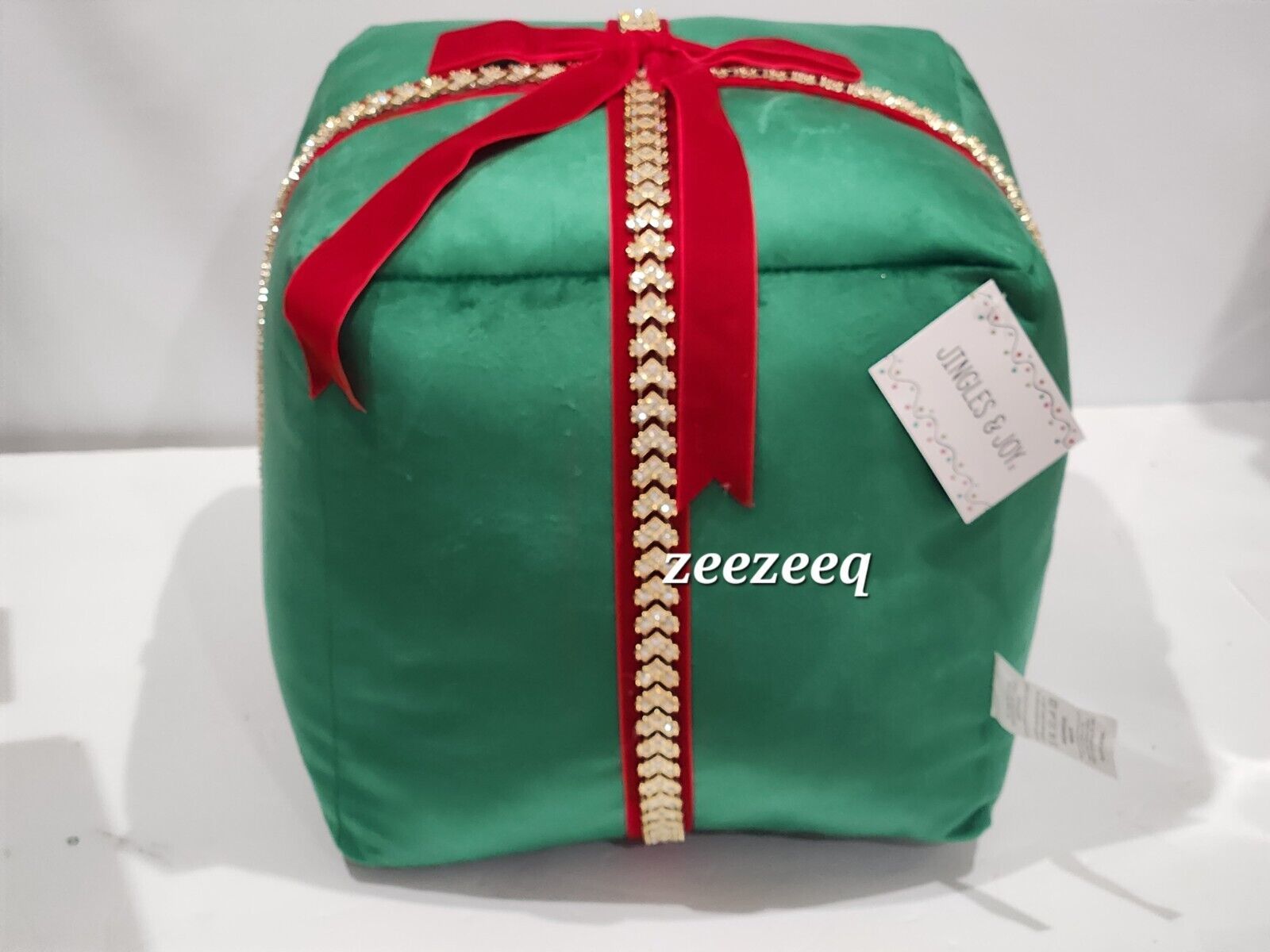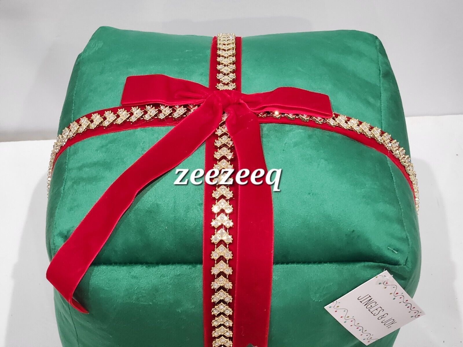 Jingles & Joy Christmas Green Present Rhinestone Pillow Embellished Ribbon NEW