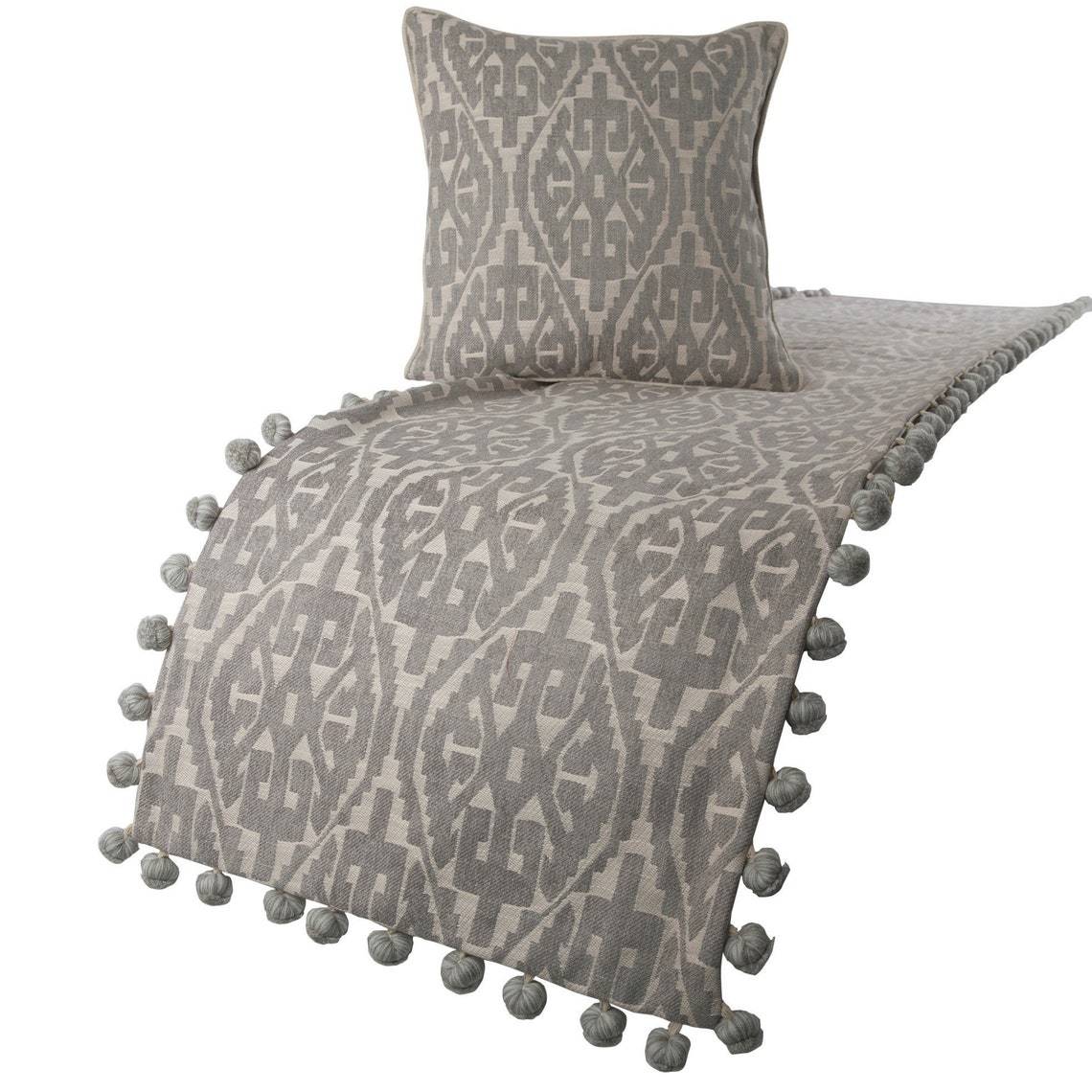 Grey Aztec - Cotton Grey Decorative Bed Runner and Pillow Cover