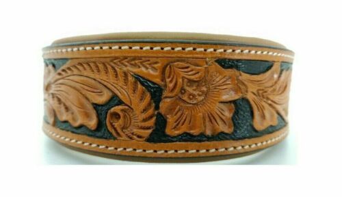 Shwaan Leather Dog Collar Tooled Hand Padded Floral Christmas Day