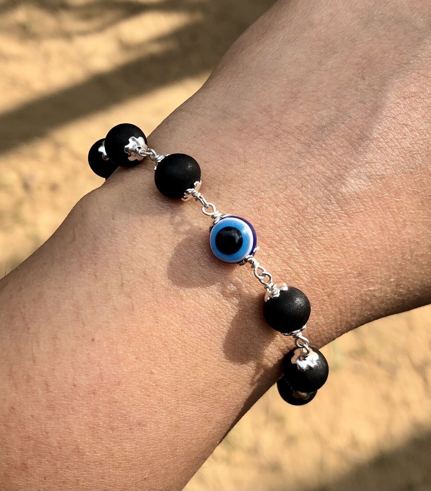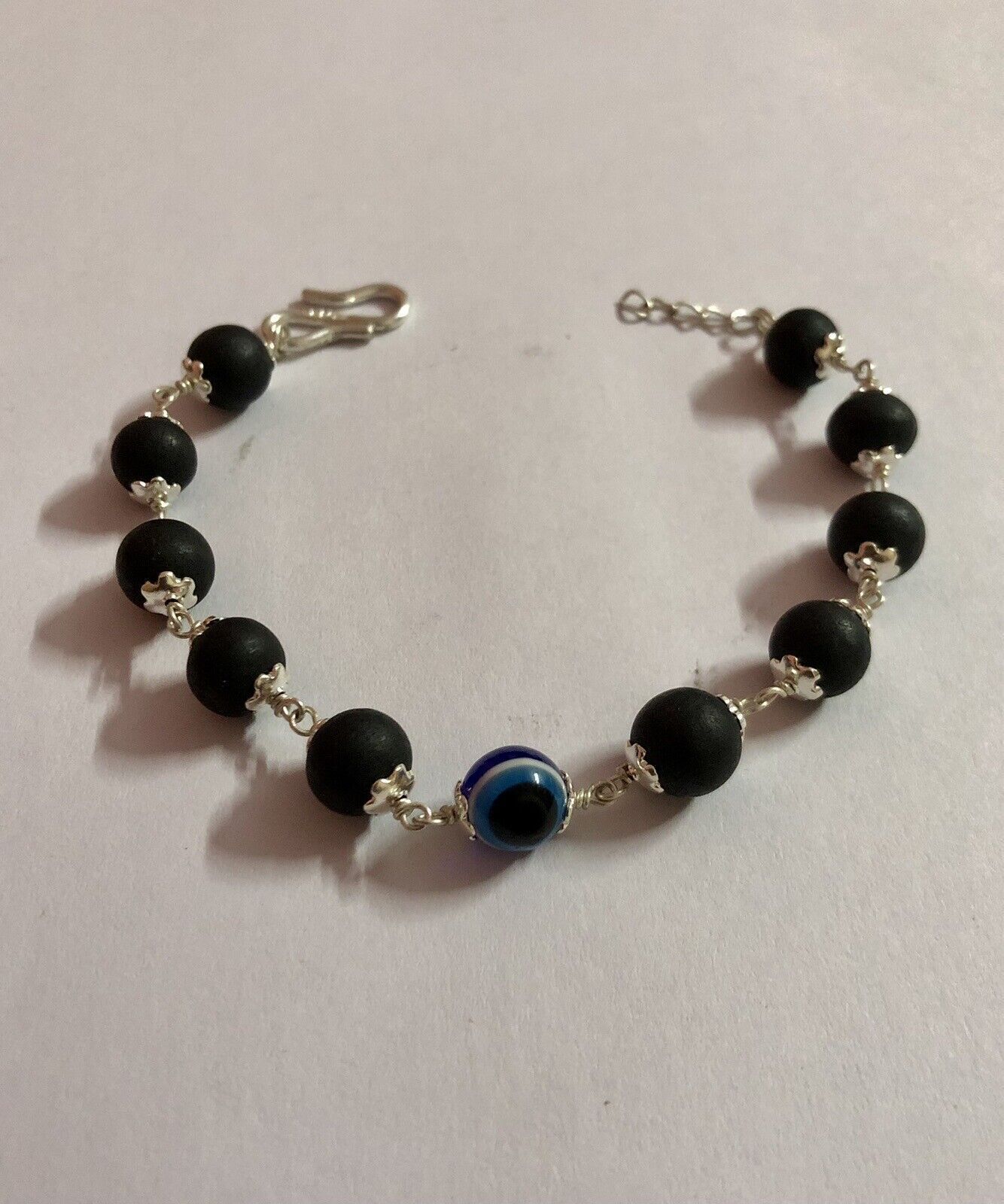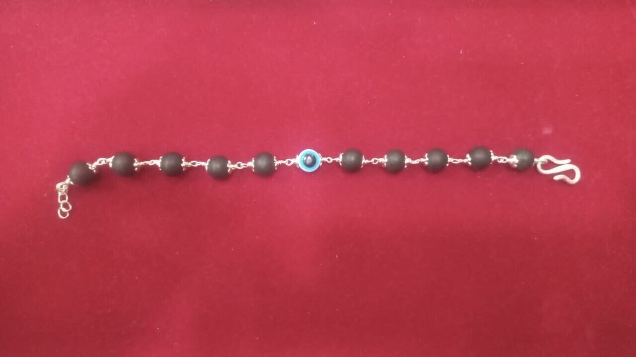 925 Silber + Original Ebenholz 8 mm natürliches Karungali Evil Eye Armband...