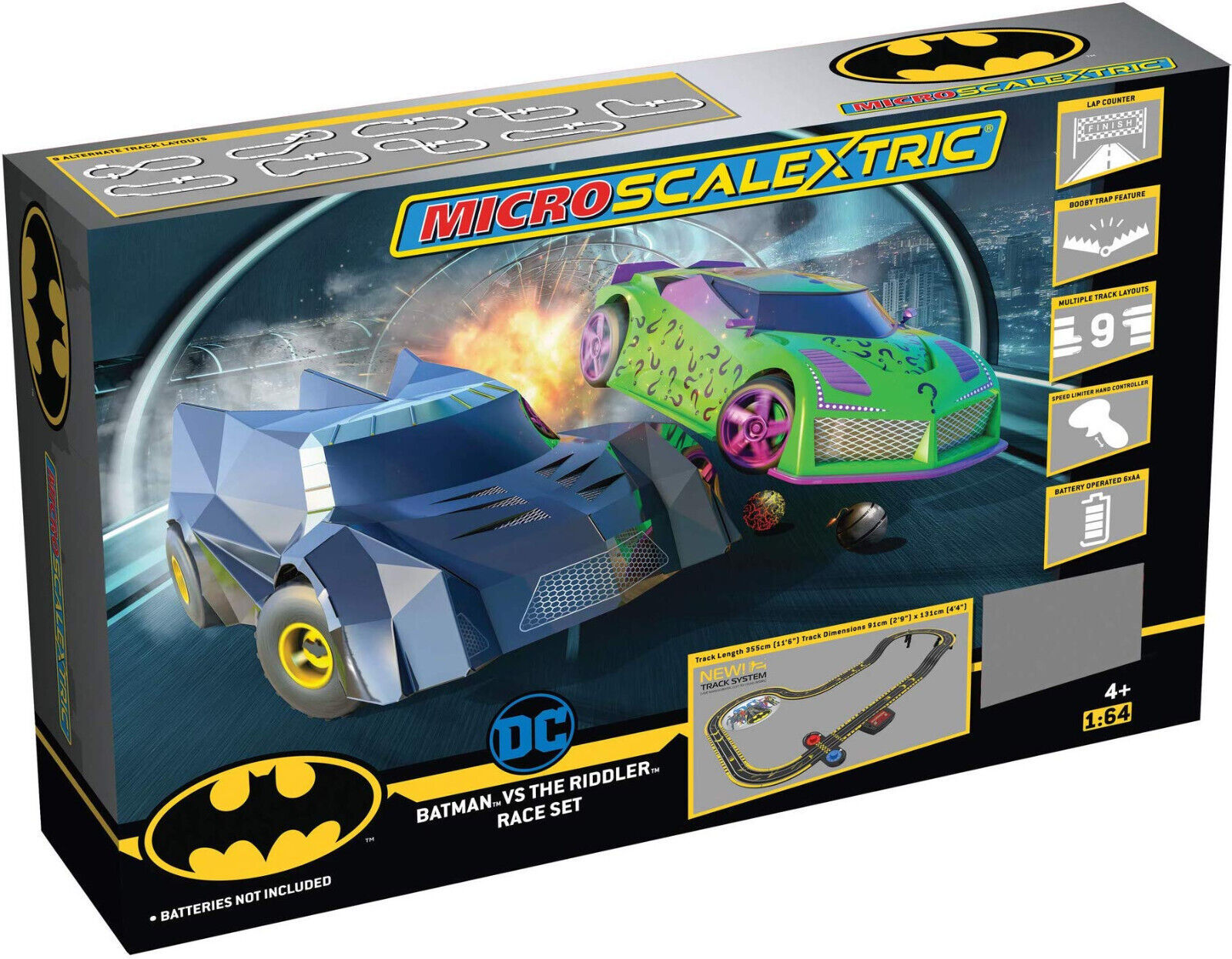 2022 MicroScalextric DC BATMAN VS RIDDLER H.O. Slot Car Battery RACE SET G1170T